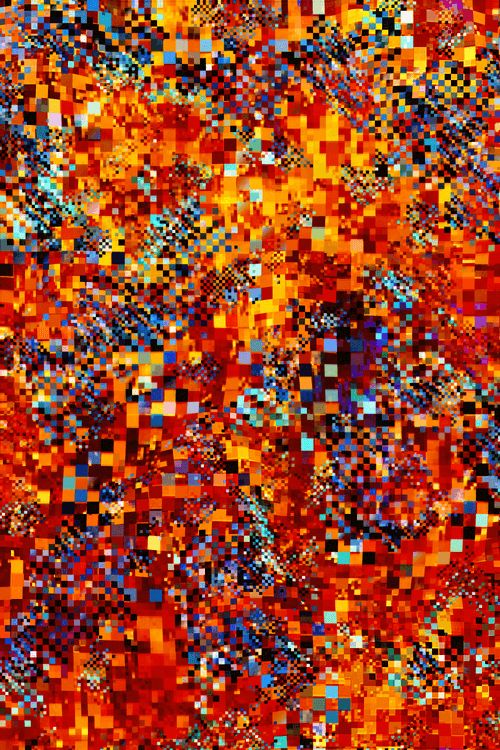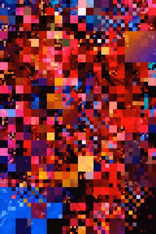“Metamosaic” specifically takes inspiration from the widespread use of squares in breaking down spatial contexts, where the use of blocks, pixels, and varying units of measurement adeptly mediate discrepancies between scales and contents. Whether recalling human-made divisions of land, digital screens, cartography, or tilework, this series celebrates the precision of the grid and the hidden complexity of underlying detail it can contain. It suggests an uncharted world within each composition, one that’s a minuscule yet indispensable fragment of something vast and incomprehensible. Patterns may lurk within every piece, even as their origins seem random and boundless. At its essence, this is an abstracted exploration of contrasting units whose randomness is accentuated so far that they ultimately highlight the profound similarity and unity that transcends vastly differing scales.
