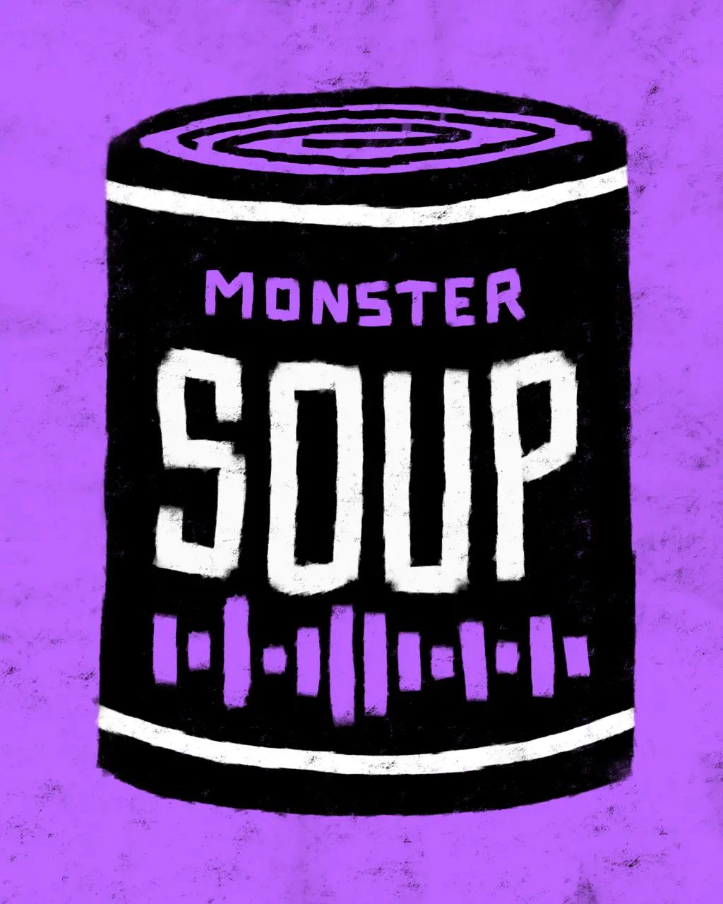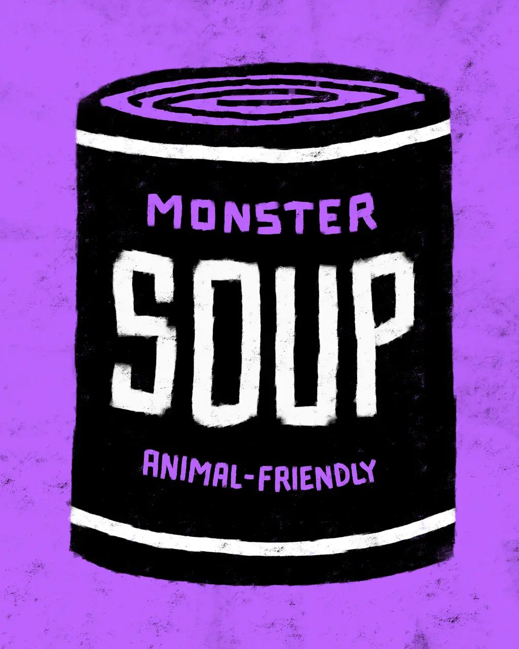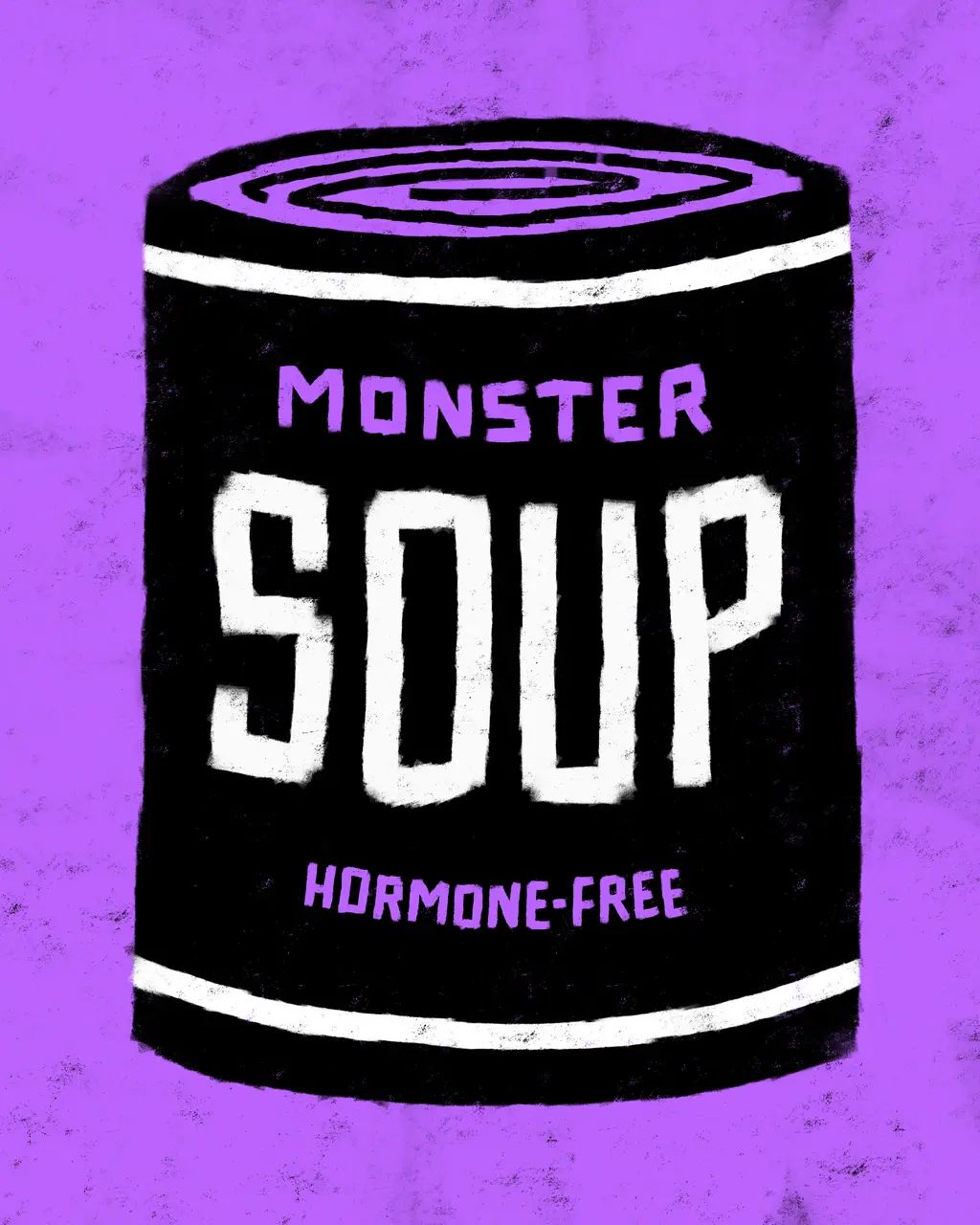 Monster Soup by Des Lucréce presents 100 different varieties of soup cans, each featuring Lucréce’s renown “Monsters” theme, available in his four signature colors.