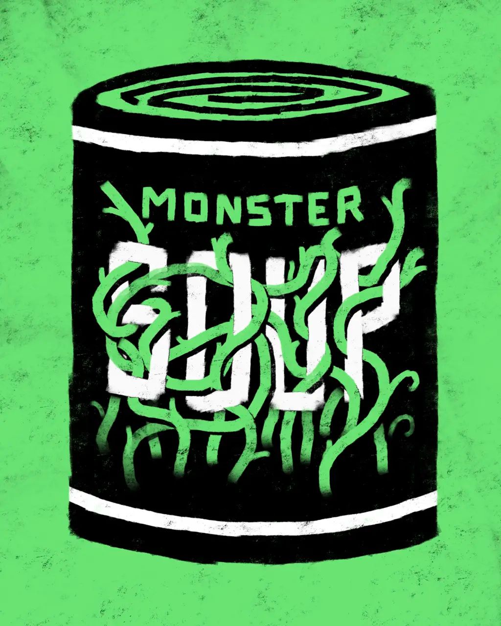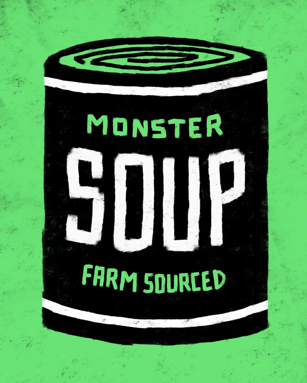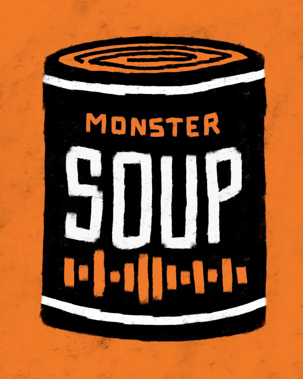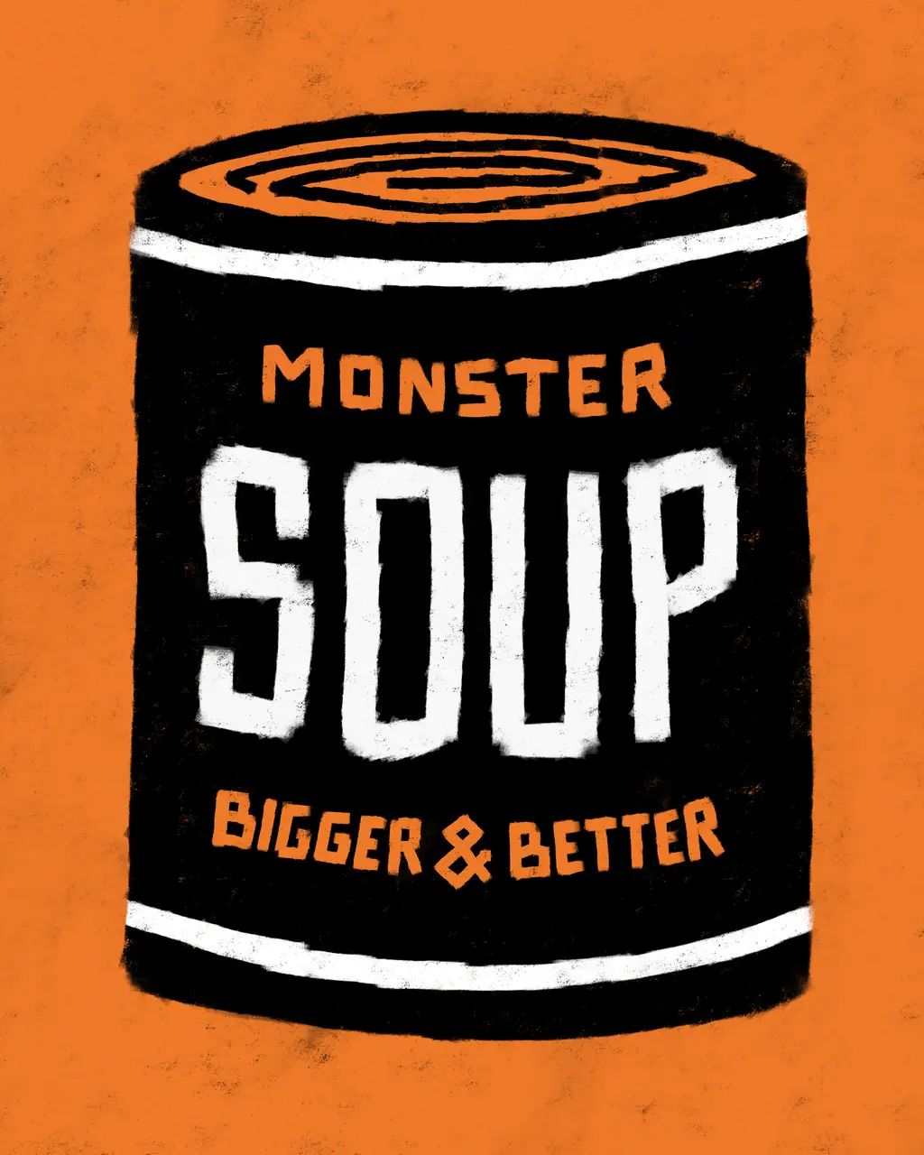 Monster Soup by Des Lucréce presents 100 different varieties of soup cans, each featuring Lucréce’s renown “Monsters” theme, available in his four signature colors.