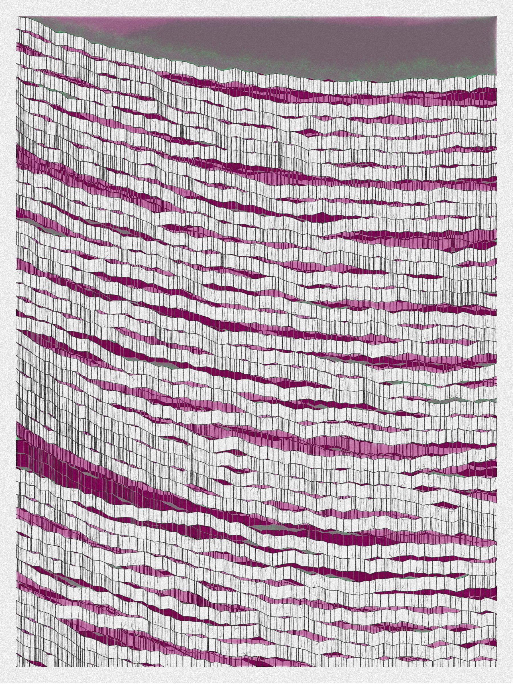 Looking at one Neural Sediment will deliver you a first broad impression; however, looking at it for a longer time will yield a never-ending and much more nuanced and delicate observation. Like Alberto Burri’s Cracks series, some things not obvious to the eye become real over time. Each Neural Sediment opens itself to the viewer in a unique way. The more you look at it, the more you can decipher it.