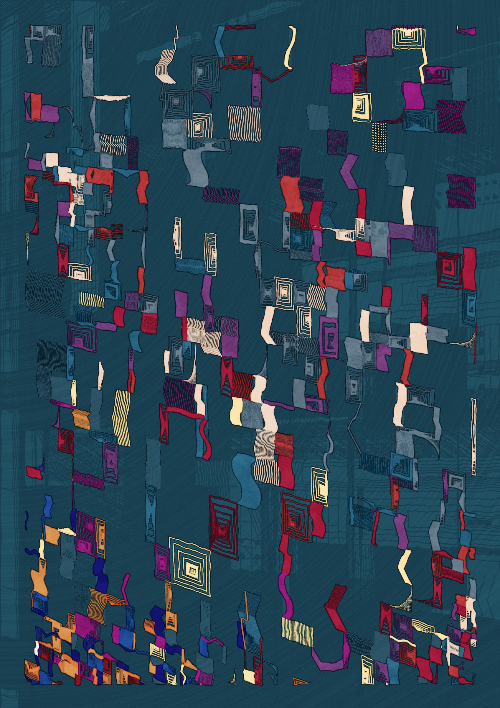Nära allows the viewer to explore and experience these graphs as a metaphor for the organic, organised chaos that is life. Shapes connect from one node in a graph to the next, sometimes spilling over, doubling down and creating layers of intricacy. Imperfection is embraced and Nära exposes the chaotic and unpredictable elements of life.