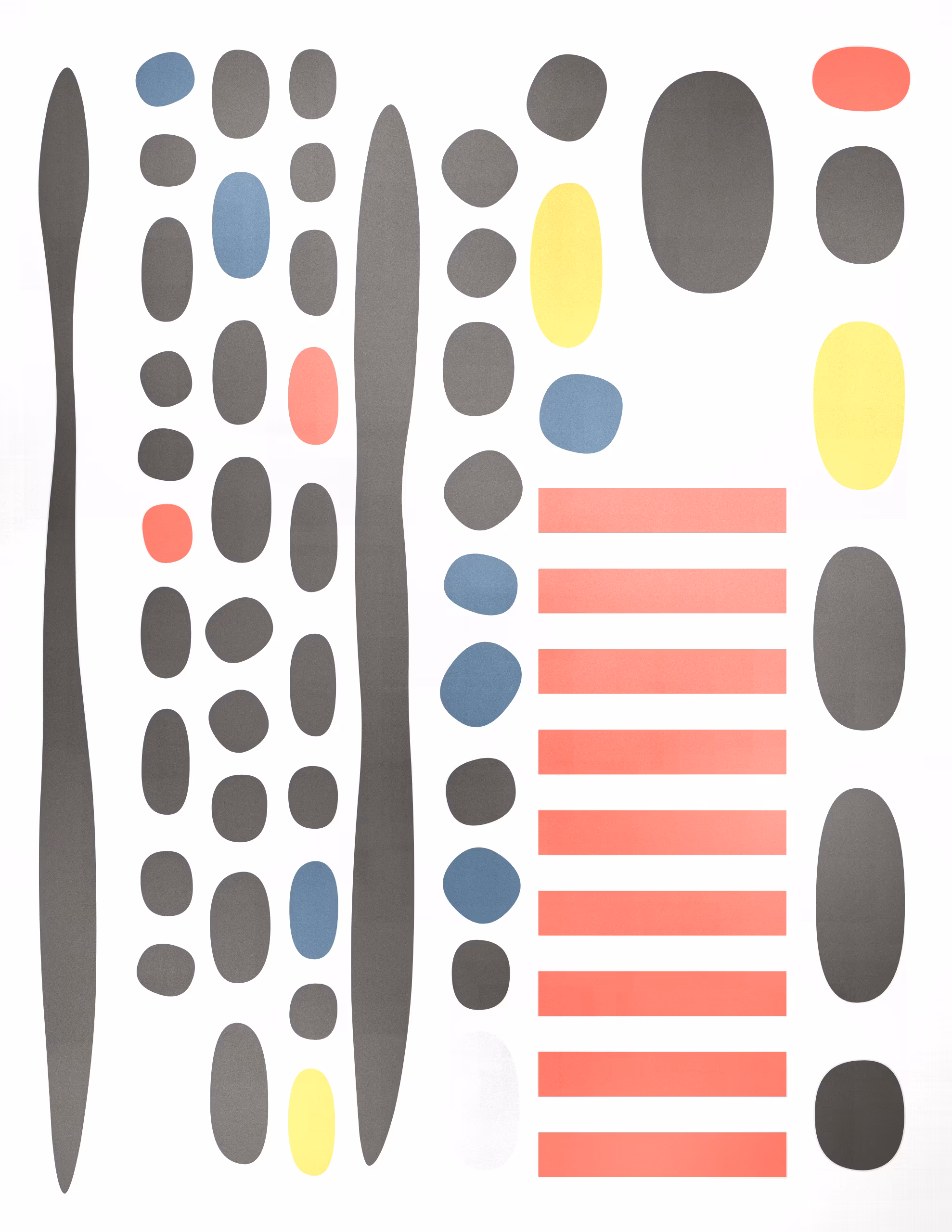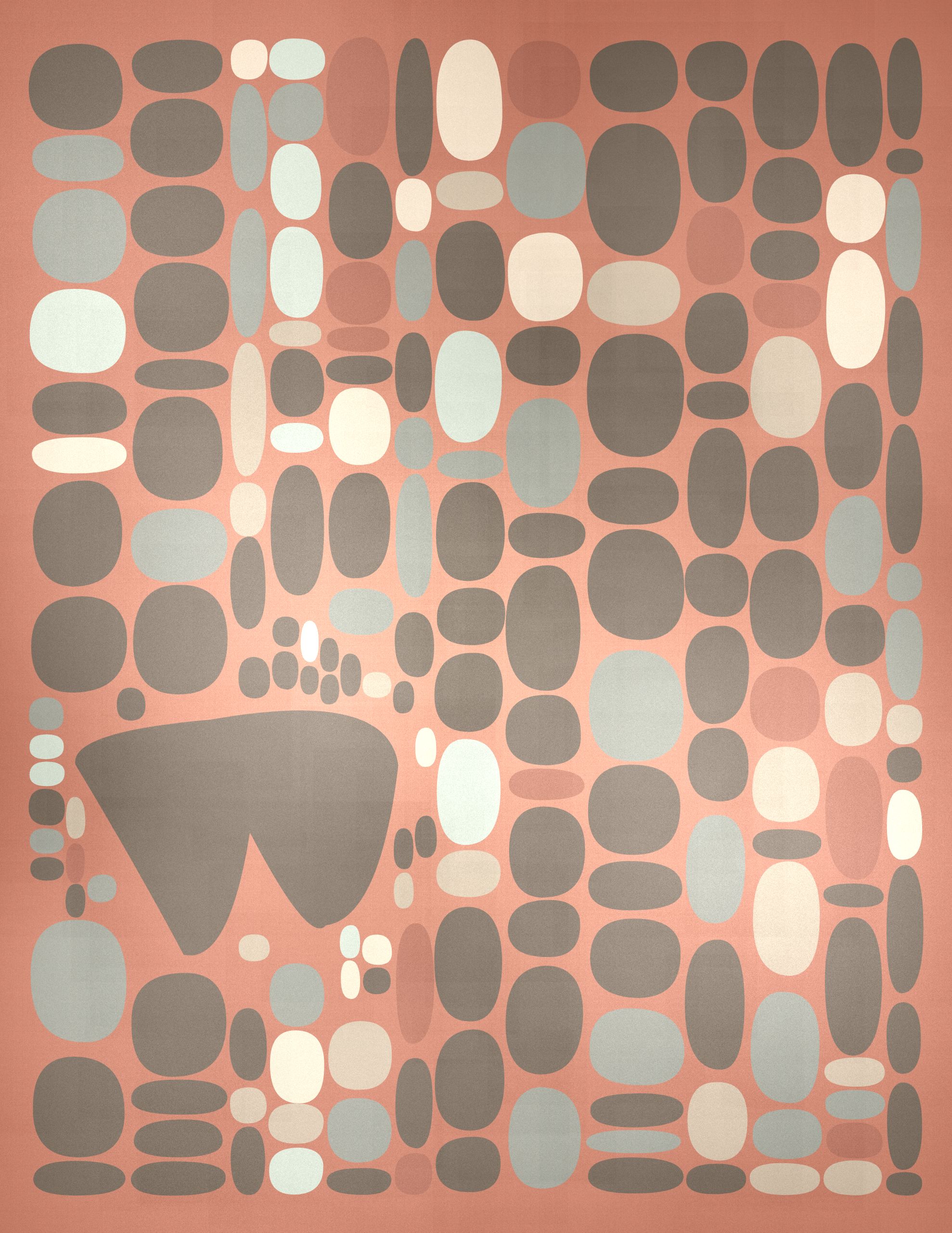 Pebbles is a generative art collection that captures the organic diversity of stones as seen through a modernist lens. Against a backdrop that suggests the texture of woven fabric, each piece in the collection presents a playful scatter of rounded shapes and colors. The collection's signature lies in its structured randomness, with certain artworks featuring a deliberate grid of circles that contrast with the free-form distribution of ellipses above. This juxtaposition of order and chaos mirrors the natural world's balance, evoking the varied forms pebbles take when tumbled by water and time. Pebbles is a homage to the beauty of natural simplicity found in the most basic elements of our environment, reimagined through a digital medium.