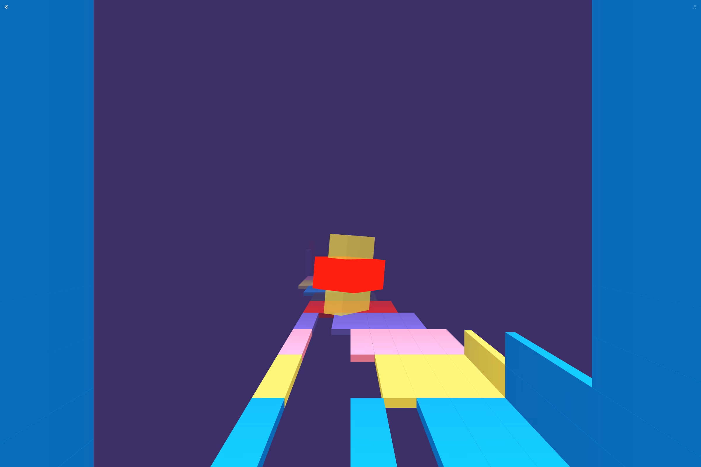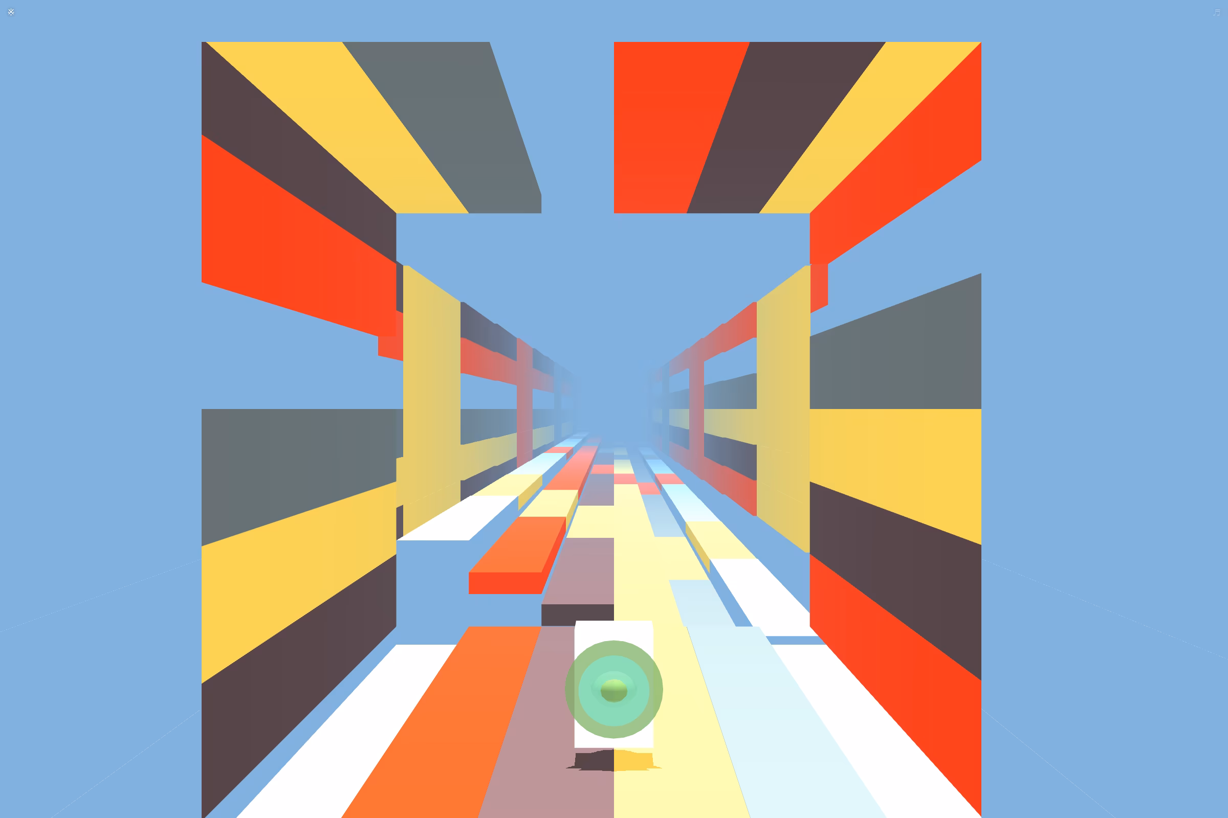 The game-objective is straightforward: you accelerate and try and stay on the road, if you miss a jump or a turn, you crash! The script determines the properties of your spaceship, acceleration, handling and max speed, as well as the map layout, including difficulty, color composition, and available power ups.