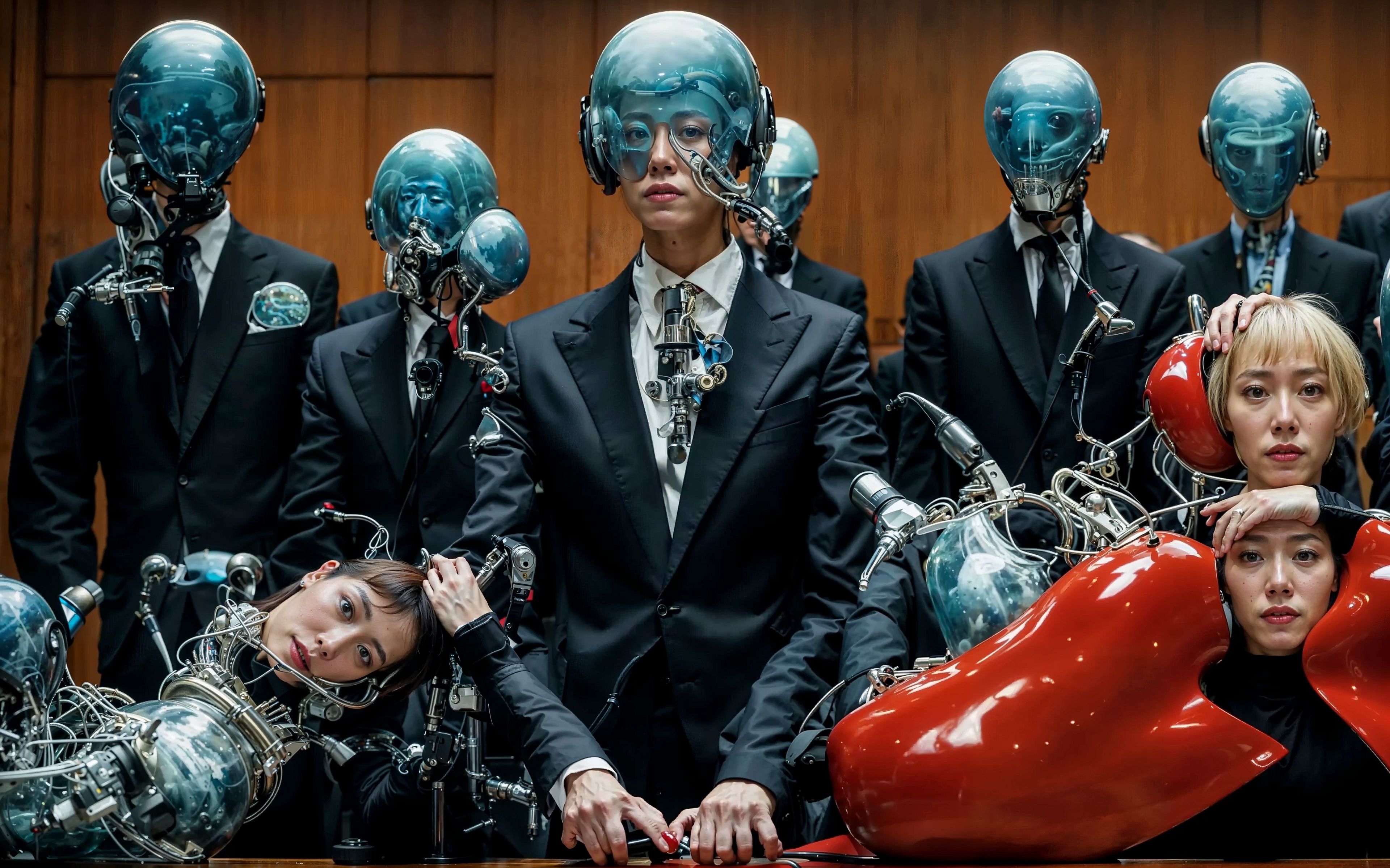 SHE/BODY/NULL by Emi Kusano explores the relationship between AI and human identity. Set within a dystopian world under a glowing red moon, Kusano portrays a cyborg-like figure—a hybrid fluidly morphing between human and machine. Through her presence in this world, Kusano contemplates how technology-driven transformations of identity and body might reform each individual. SHE/BODY/NULL is a series of AI-generated transformations in which Kusano's form constantly evolves—her body twists and distorts, intertwining with mechanical cables, dissolving into digital patterns, and re-emerging from data aggregates. Each iteration presents a one-of-a-kind appearance, reconstructing a unique version of Emi Kusano. Kusano leverages AI’s characteristics to reflect cultural biases, deliberately embodying the recurring sci-fi trope of the ‘exotic, mysterious Asian woman‘ to critique and confront such media-driven archetypes. The work presents two possible futures: a world where technology enables totalitarian societal control, and an emancipated vision of humanity embracing expanded physical and intellectual boundaries. Kusano’s work offers a reflection on these possibilities, urging viewers to consider the profound impact of AI on the human experience and the future of society.