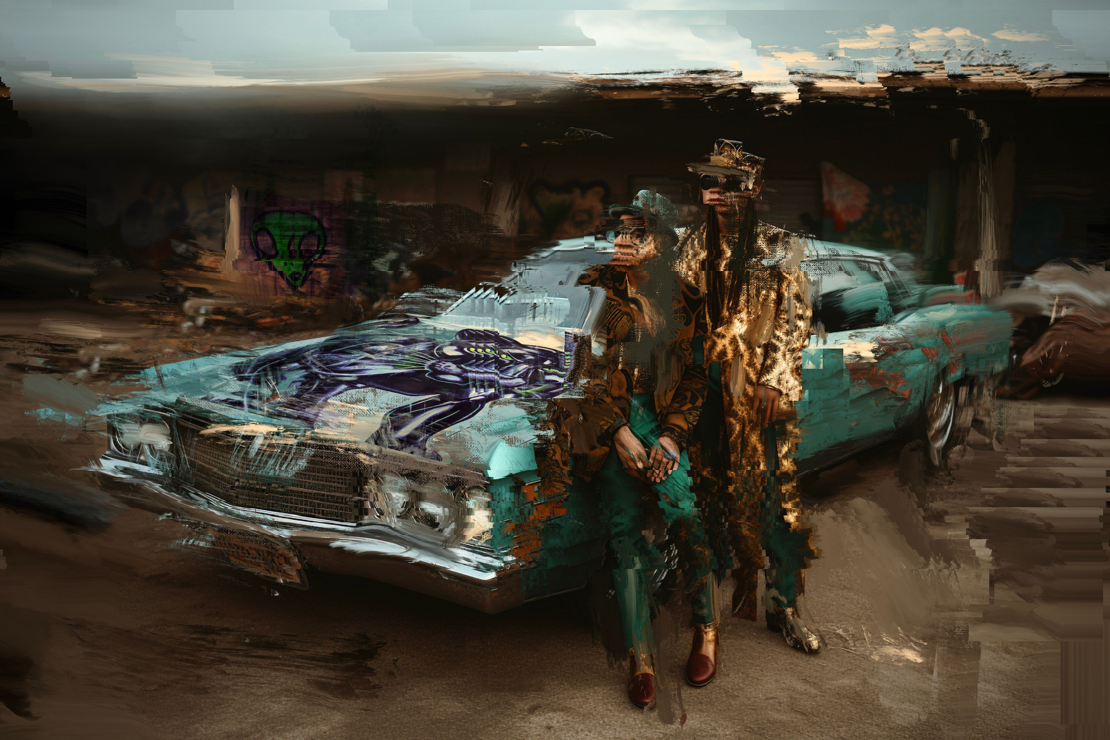 SIGHTSEERS, Norman Harman's first serial collection, created a world that goes to the roots of both the cryptoart movement and of humanity's current historical crossroads. Based on the sightseers who came to watch the nuclear bomb tests that took place in the desert outside of Las Vegas during the 1950s, the landscape is populated with blithely doomed figures. Against this backdrop, Harman invokes the cataclysmic potential of a new technological frontier: AI.