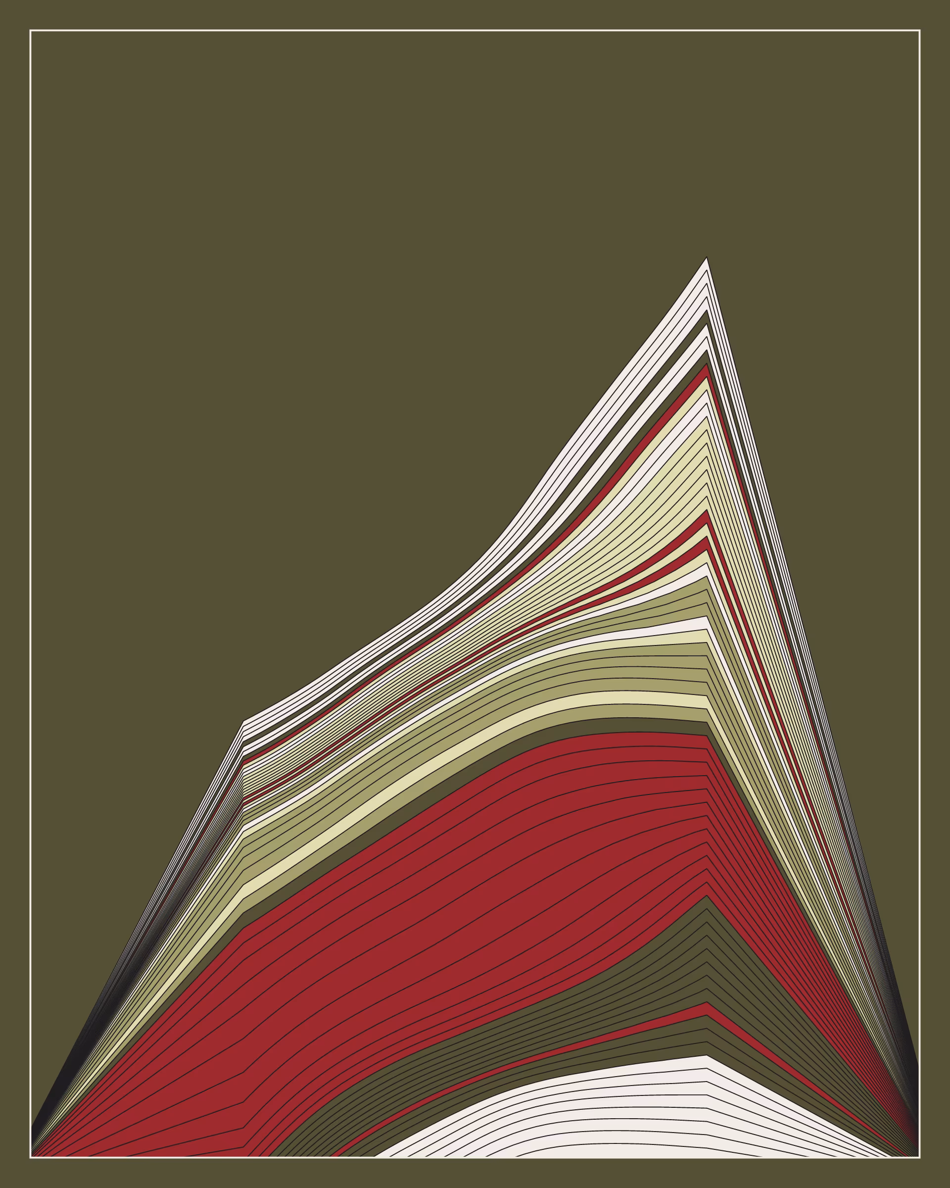 Project Description: Strata explores the field of geology and more specifically rock layering. In the physical world, layered rocks form when particles settle from water or air. These layers of sedimentary rock are called strata. In the digital world, the Strata algorithm generates layer upon layer of colors to draw the impression of rock layering. Each token hash decides the unique path Strata takes through the generative space to the final output.