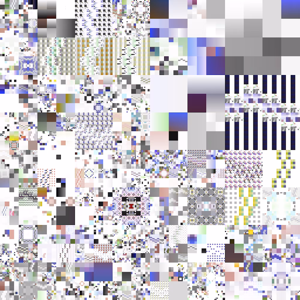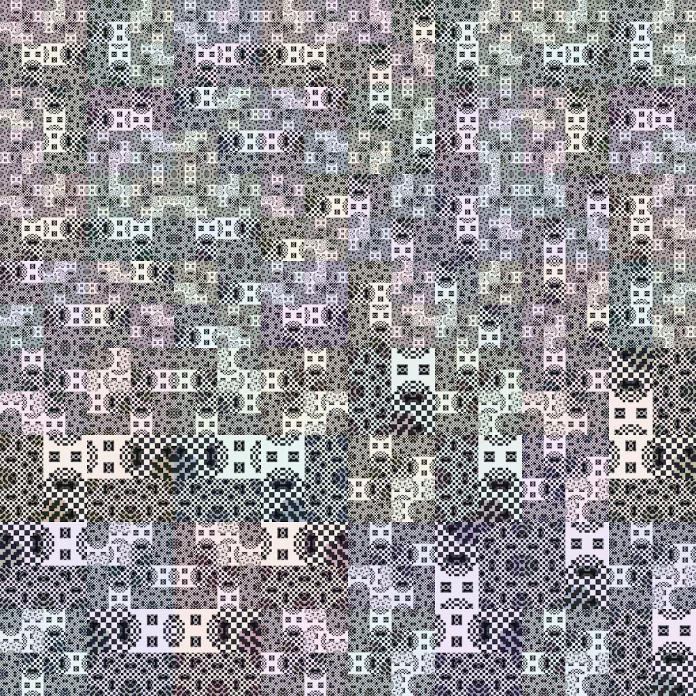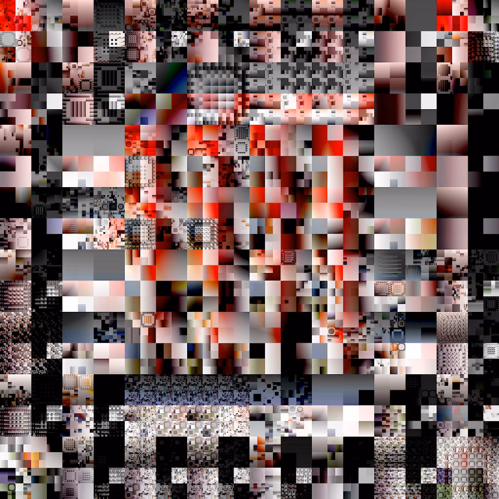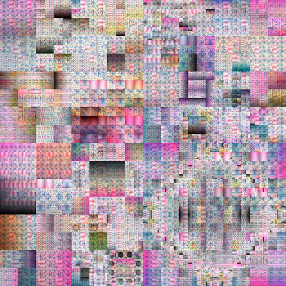 Struggle for Pleasure is based on the artists’ continuous engagement with foundational algorithms in computer science which began around 2005, in this case with particular focus on the implementation of a “quadtree”. Its chronological outputs are curated and manually processed into artworks that explore the interplay between pixels, perception, and emotion.