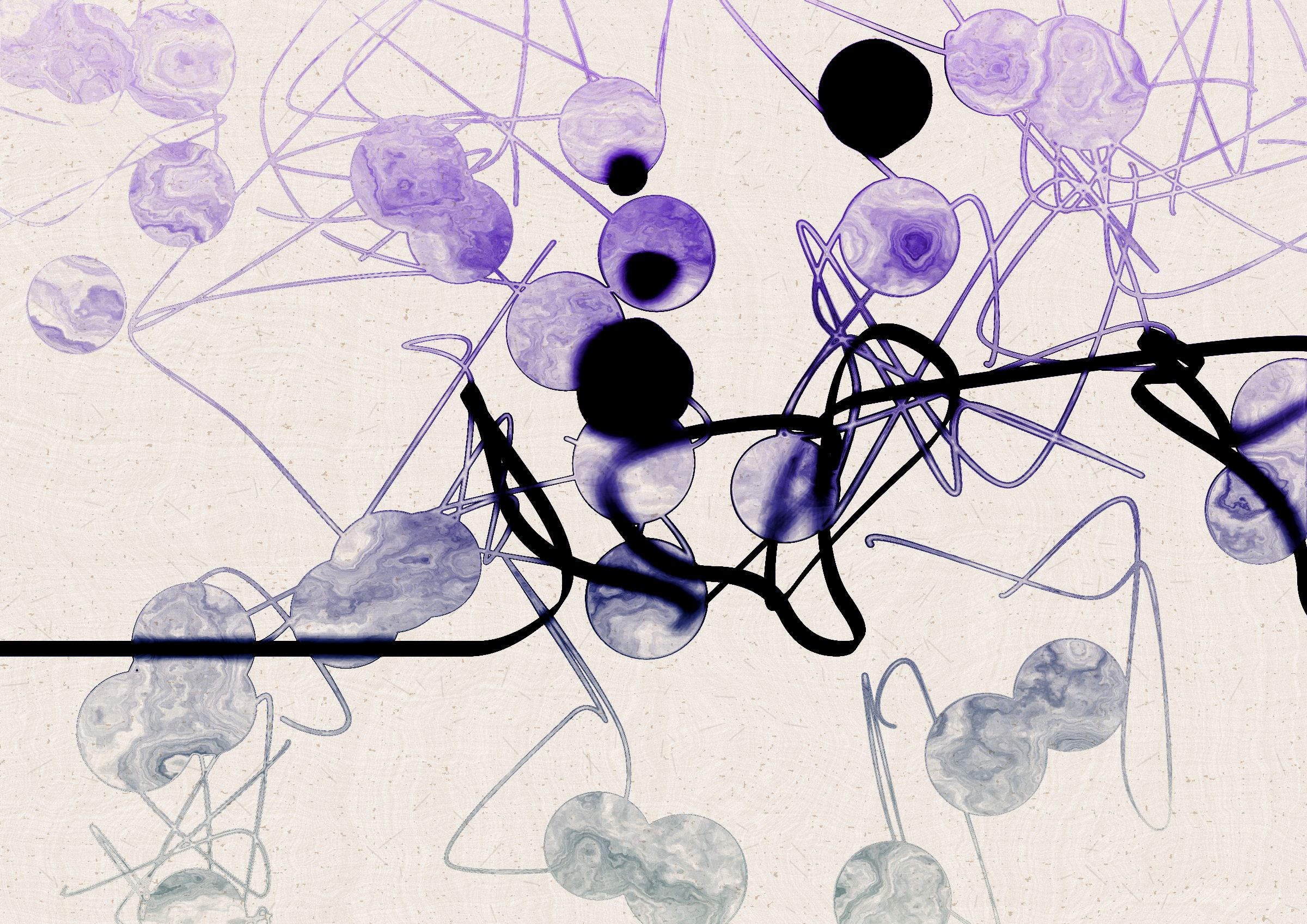 Digital liquid is spilled upon it and takes the ink in directions that are unexpected, uncontrolled, and tell a much more interesting story than the one the line intended.... and often more beautiful.