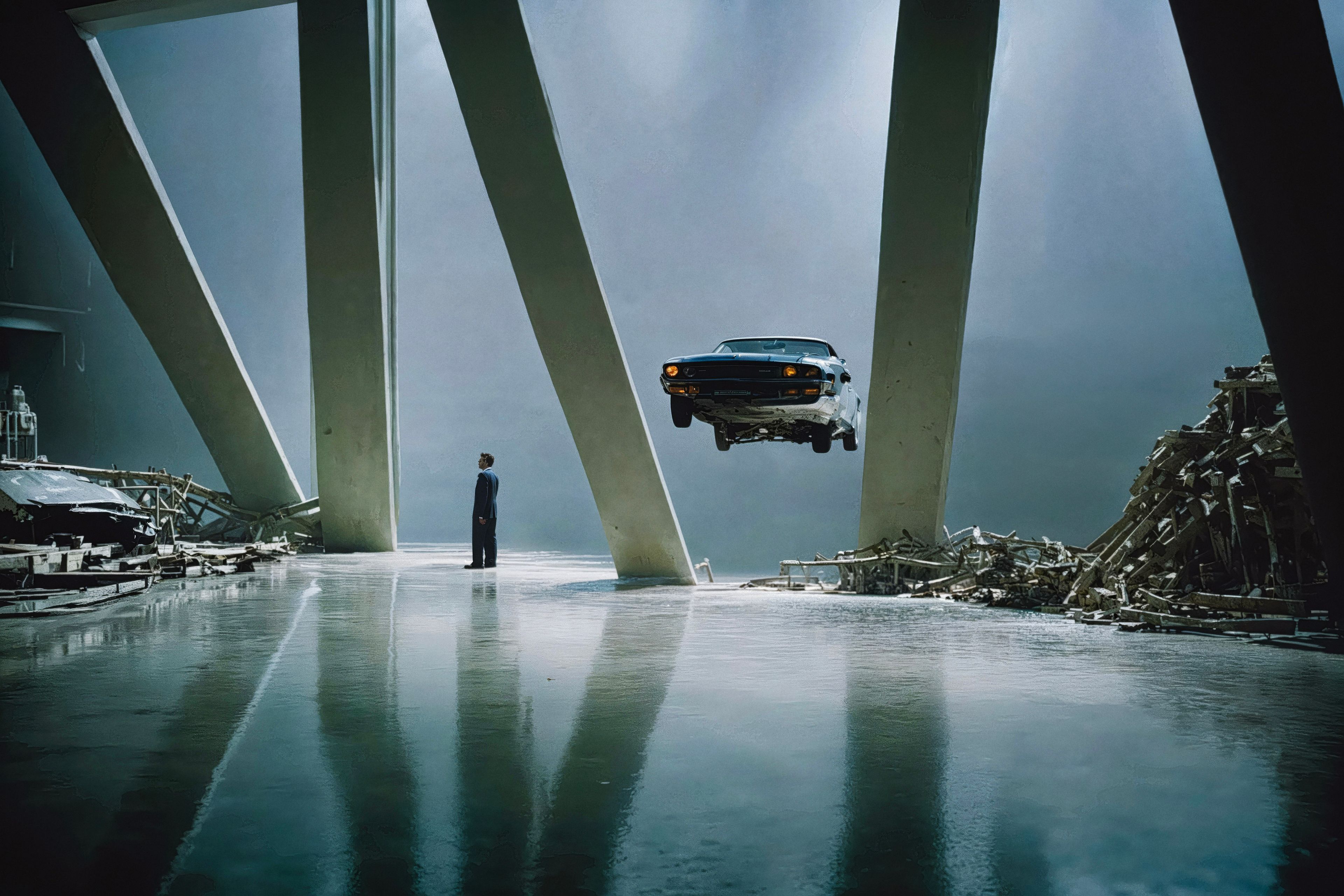 “Symbiosis” explores the relationship between humans and machines. For the first time in Roope's career, photographs serve as a resource for his AI model. Roope captured images of cars, art, and architecture at the Mercedes-Benz Museum and selected additional images from the Mercedes-Benz Classic archives.