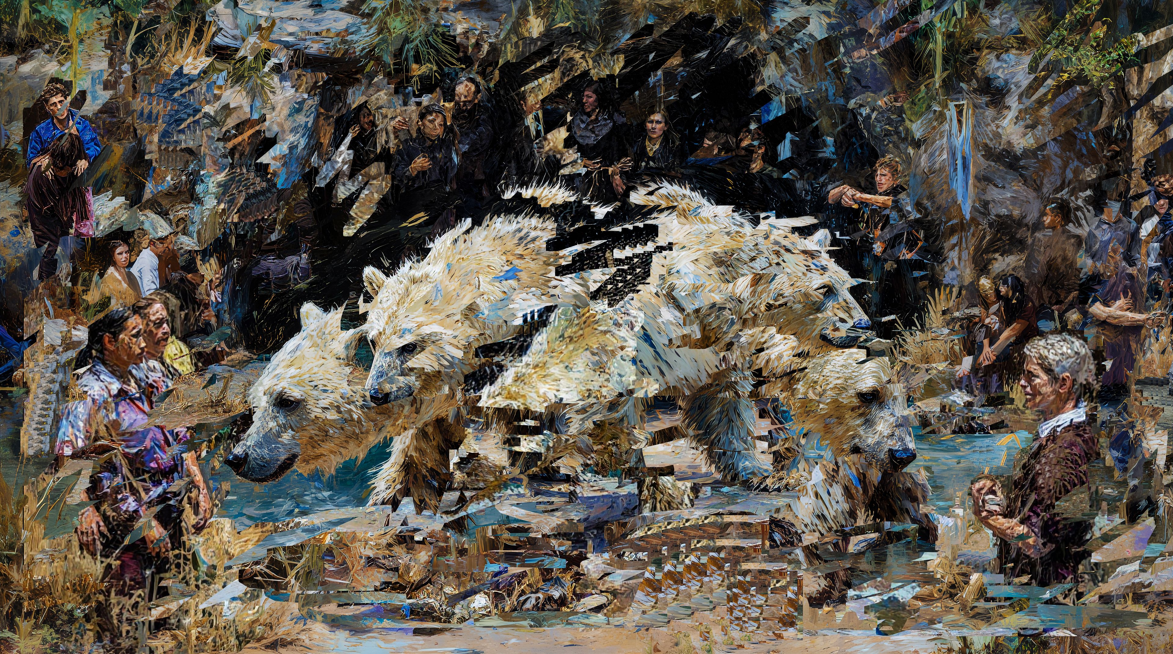 Glitched chiefly by the synthesized repainting of AI elements. Multiple AI and glitch processes. Digital painting.