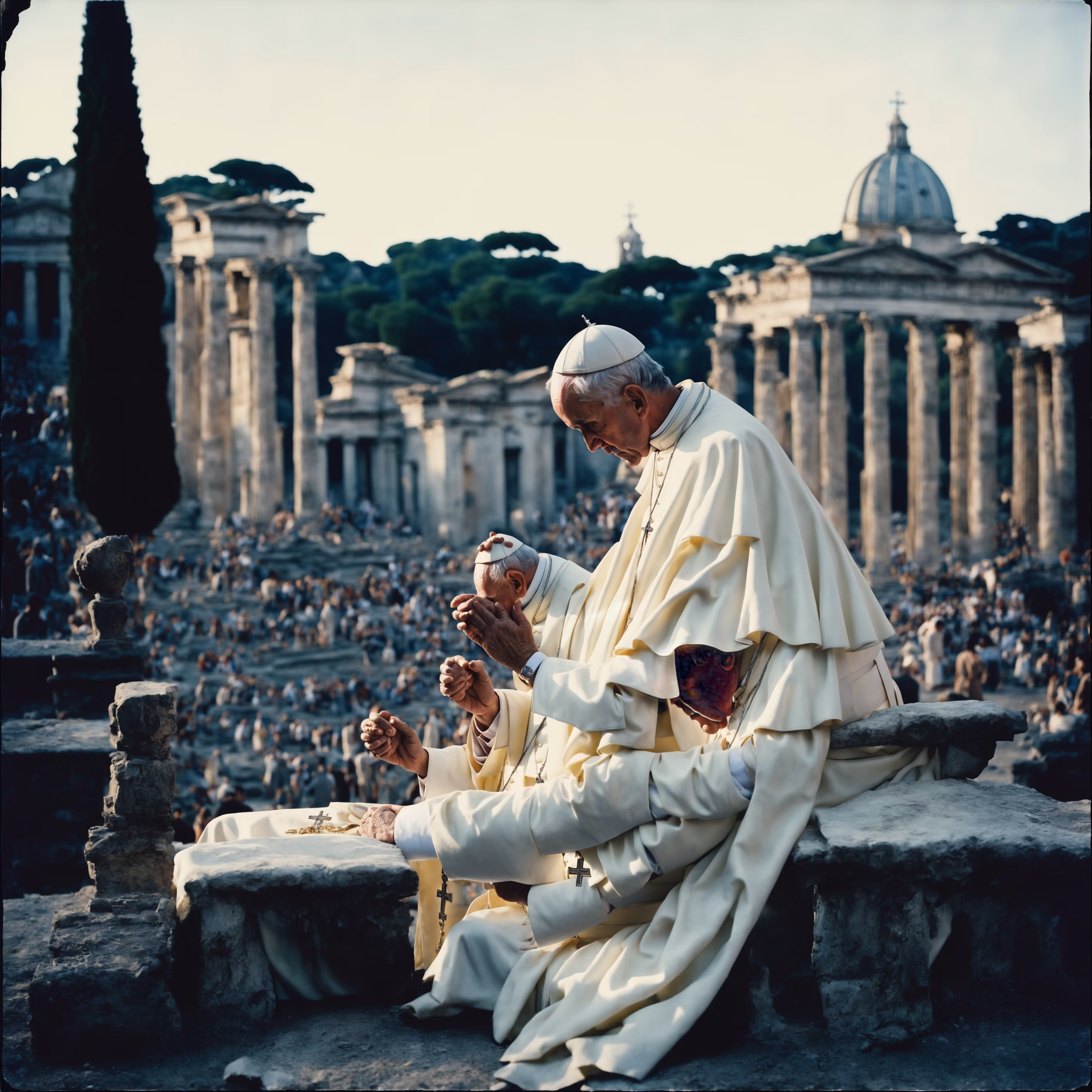 “The Crisis” a modern approach in the evolution of spiritual iconography in art history, showcasing the unique perspective that AI brings to the art form. Mirroring the fractured ethos of the postmodern era, it redefines religious imagery to reflect the disjointed reality and the broken spirituality in today’s society.