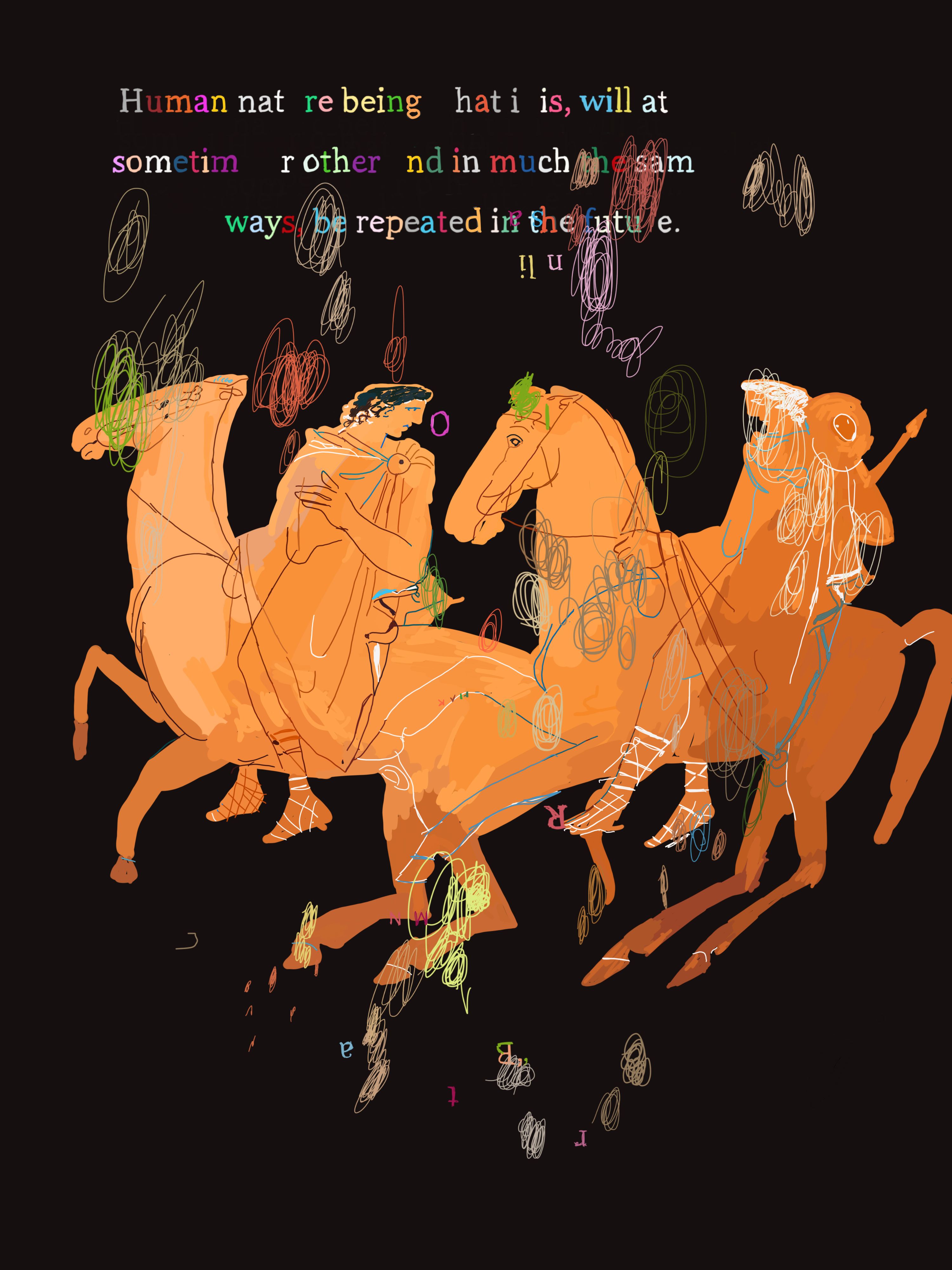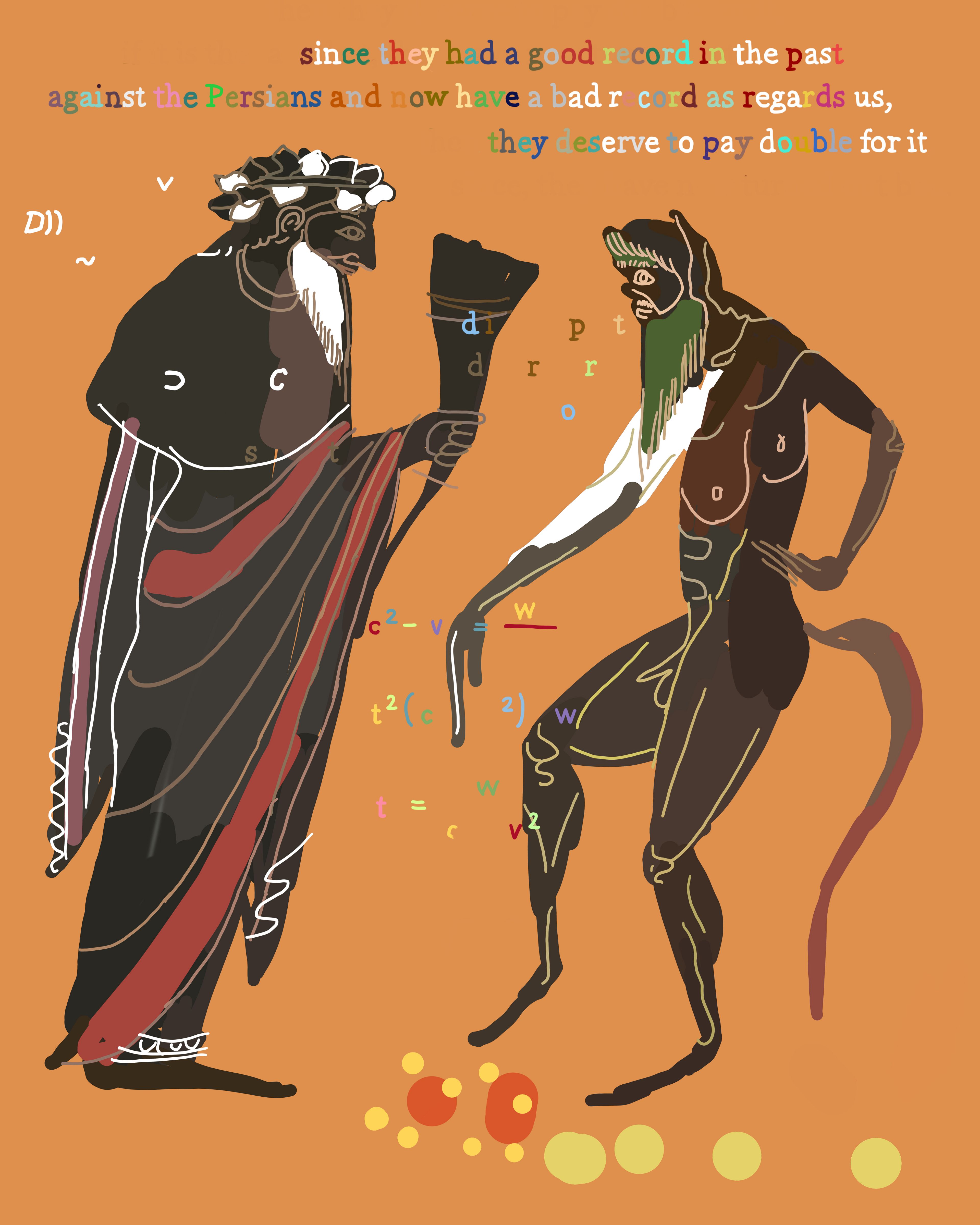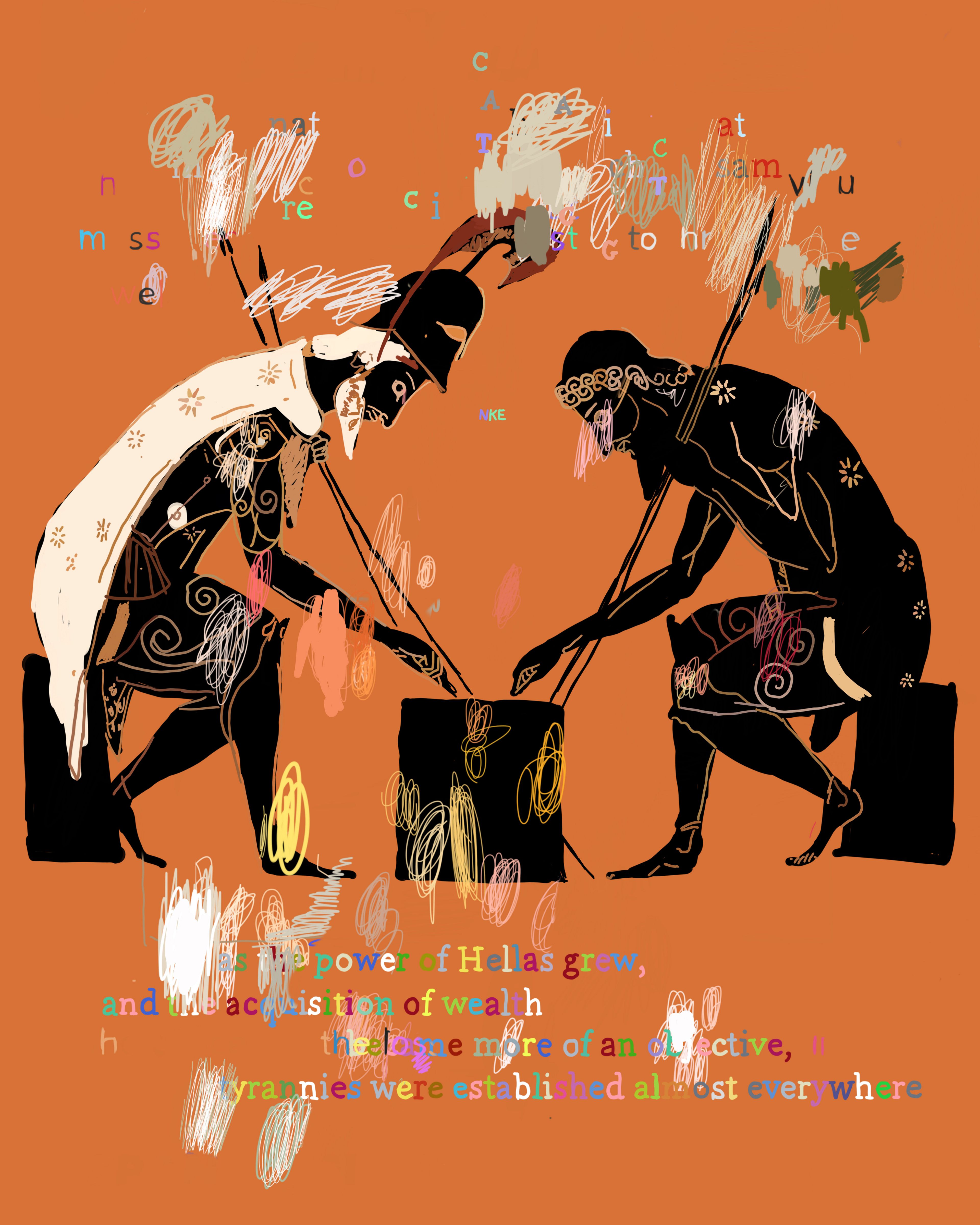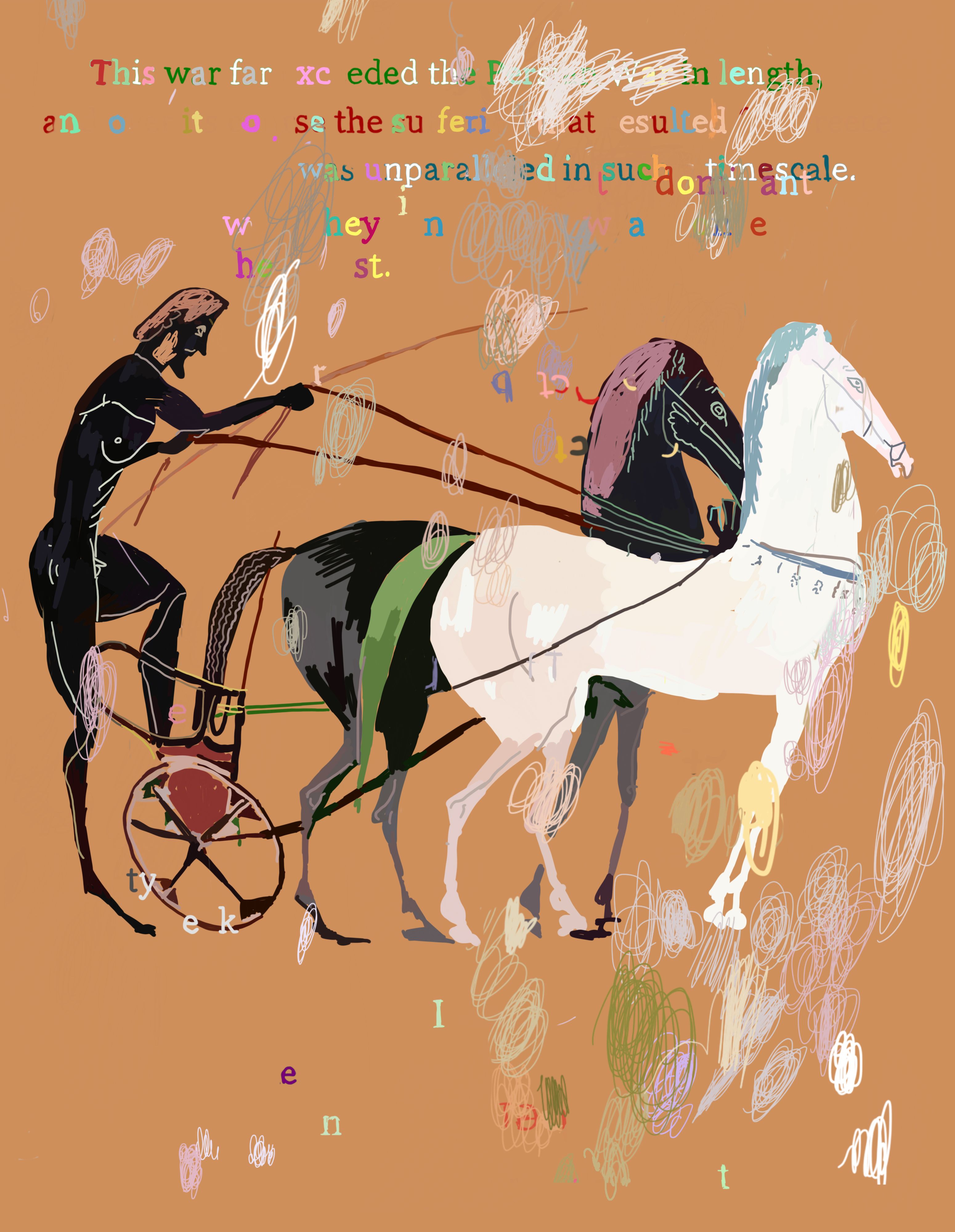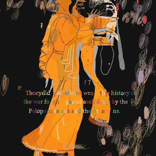 The Peloponnesian War is a collection of 200 images that retells the story of Thucydides' History of the Peloponnesian War using Ancient Greek vase imagery. Created over four years using an iPhone 6S and iPhone X, the series juxtaposes three different systems of signification: 1) text fragments from The Peloponnesian War by Thucydides 2) Greek vase paintings and 3) elements from contemporary society and intellectual history, including mathematical formulas, corporate logos, web advertisements, information theory diagrams, newspaper fragments and more. In this respect, the project became a kind of alchemy of meaning, a war of all signification against all signification.