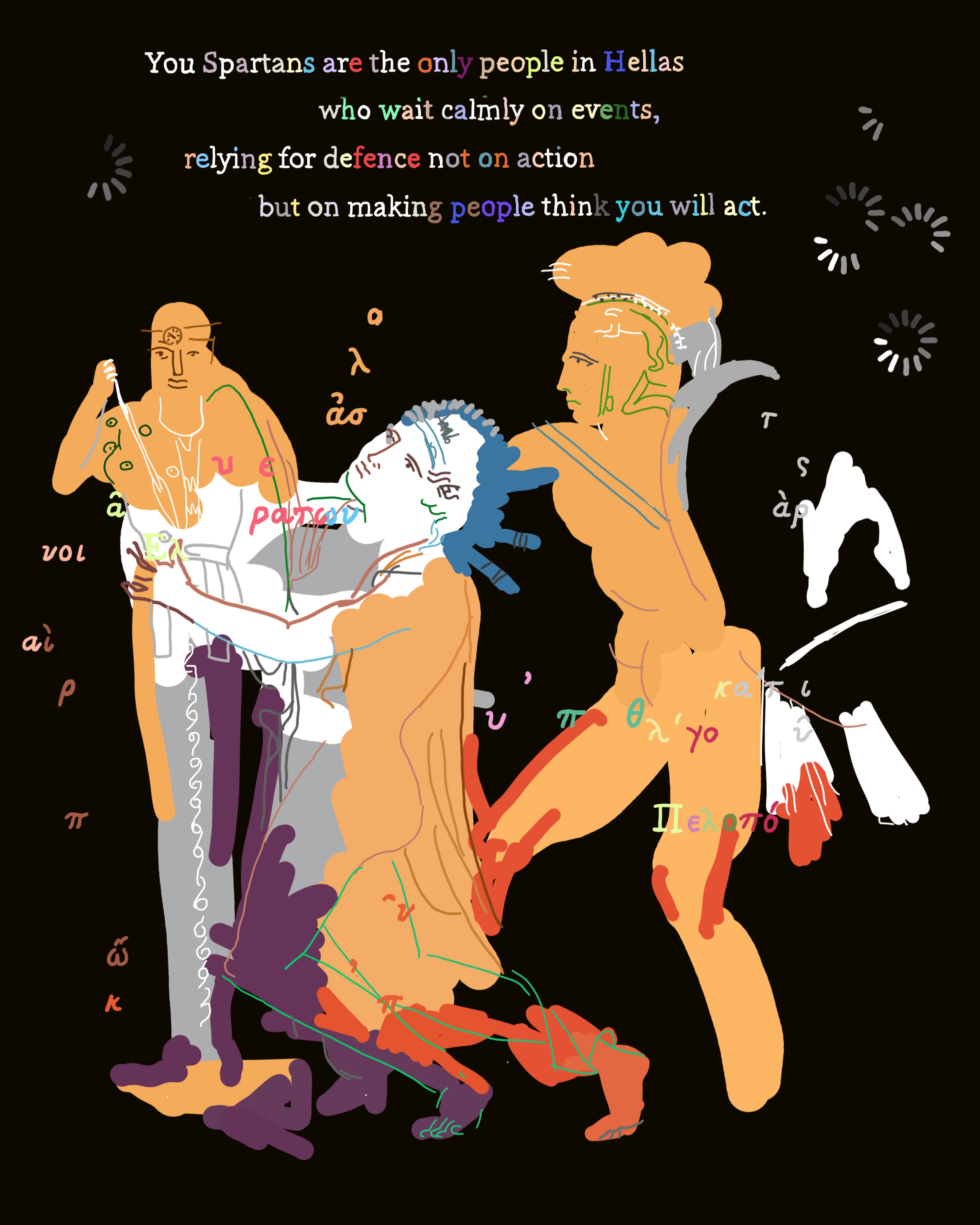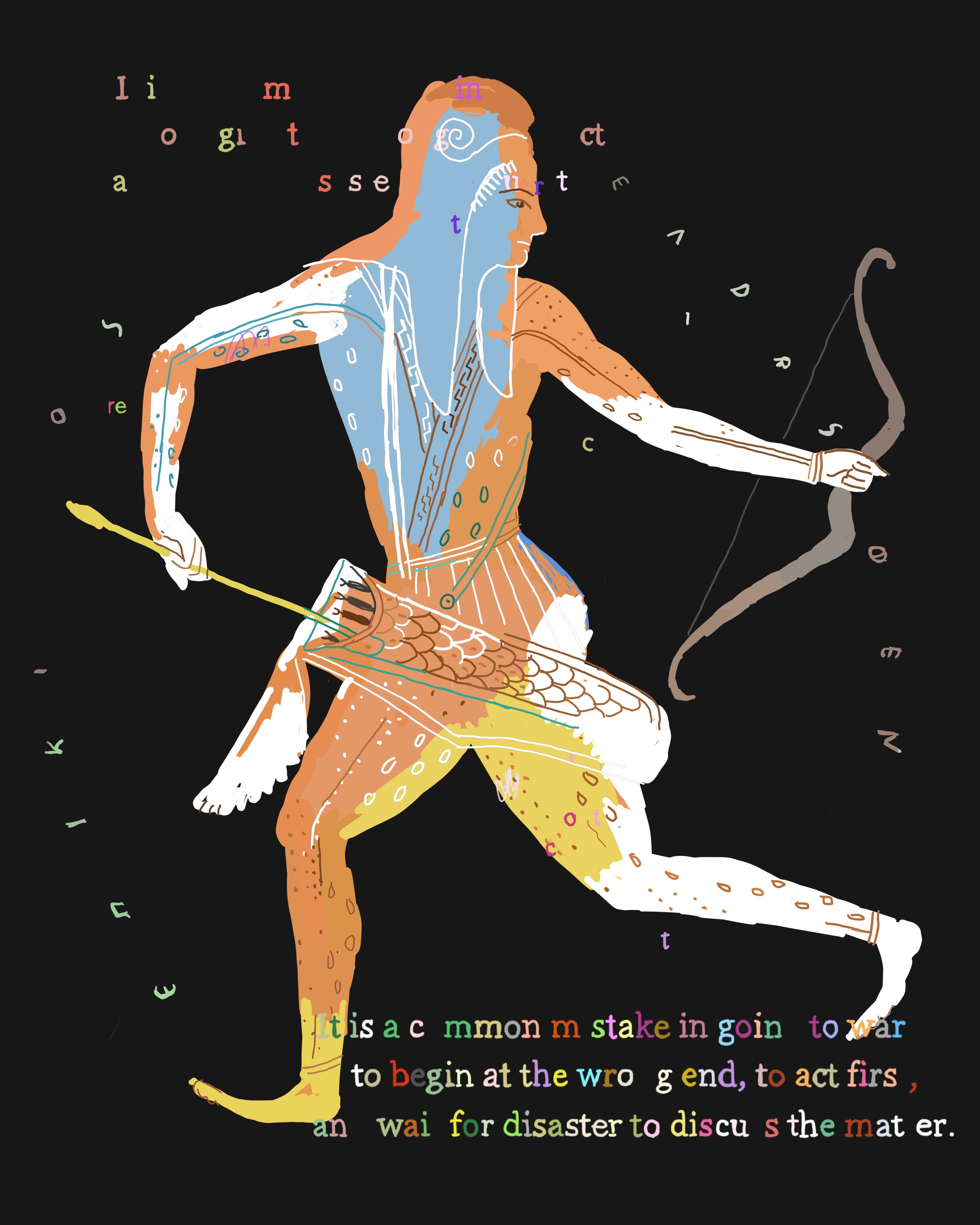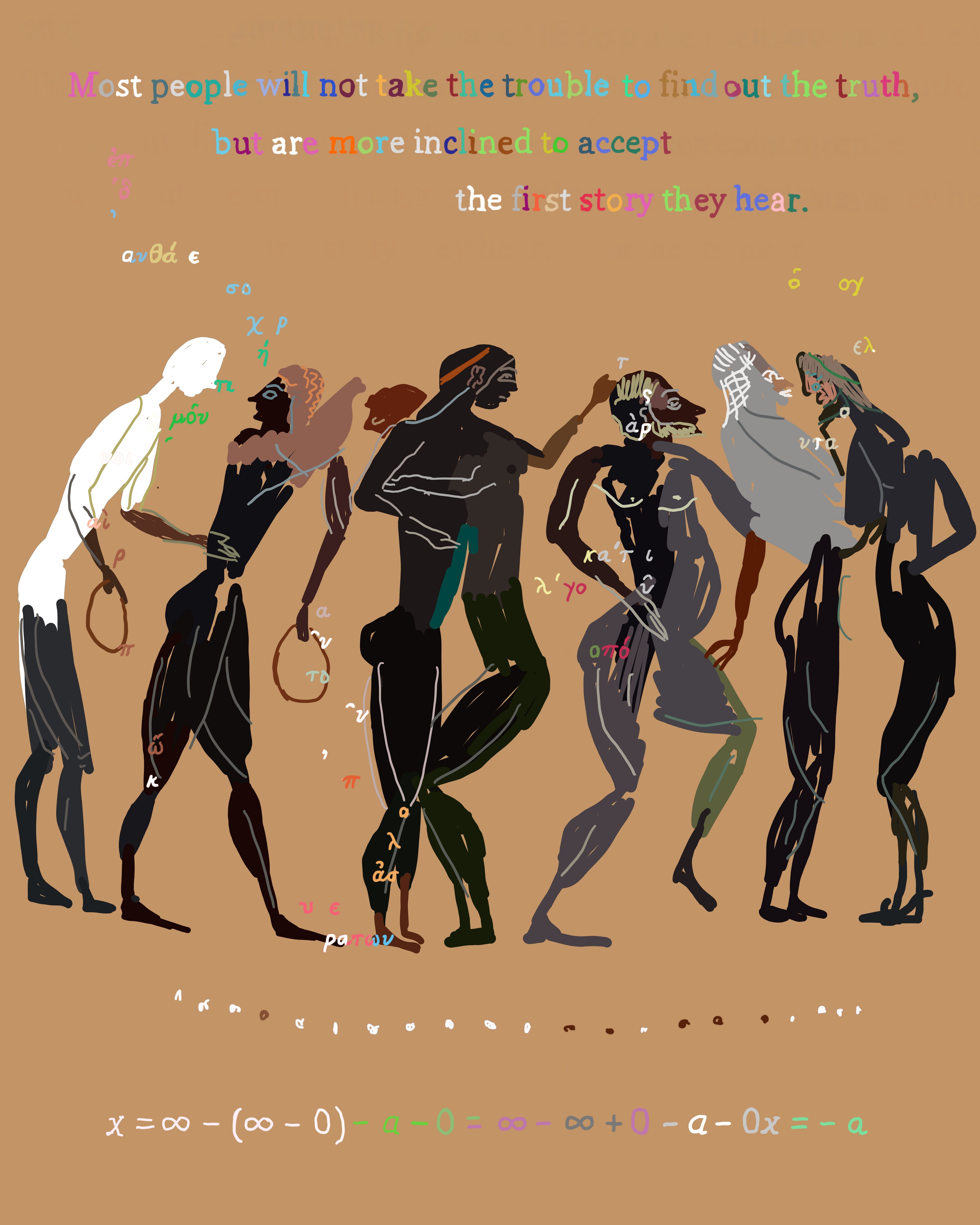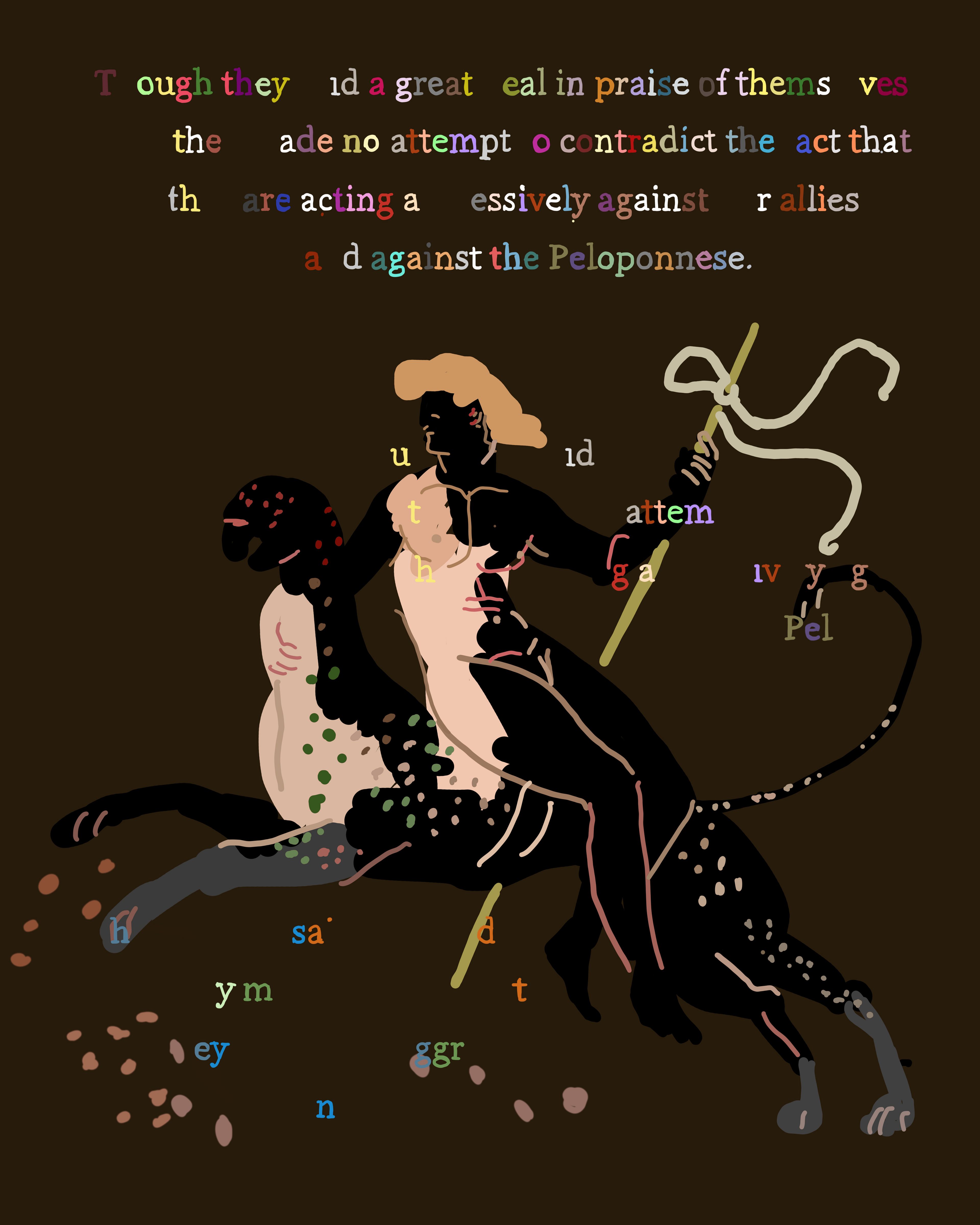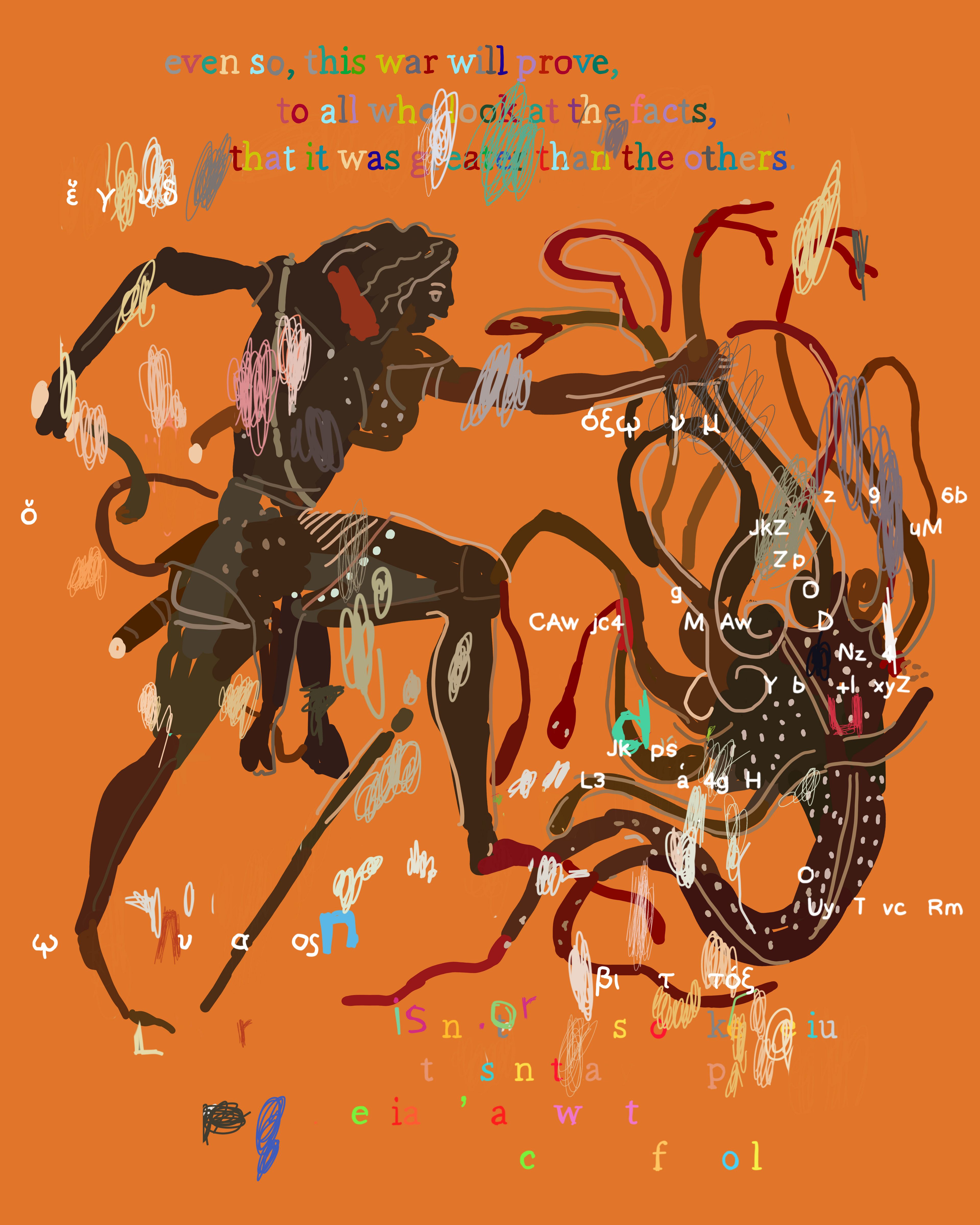 The Peloponnesian War is a collection of 200 images that retells the story of Thucydides' History of the Peloponnesian War using Ancient Greek vase imagery. Created over four years using an iPhone 6S and iPhone X, the series juxtaposes three different systems of signification: 1) text fragments from The Peloponnesian War by Thucydides 2) Greek vase paintings and 3) elements from contemporary society and intellectual history, including mathematical formulas, corporate logos, web advertisements, information theory diagrams, newspaper fragments and more. In this respect, the project became a kind of alchemy of meaning, a war of all signification against all signification.