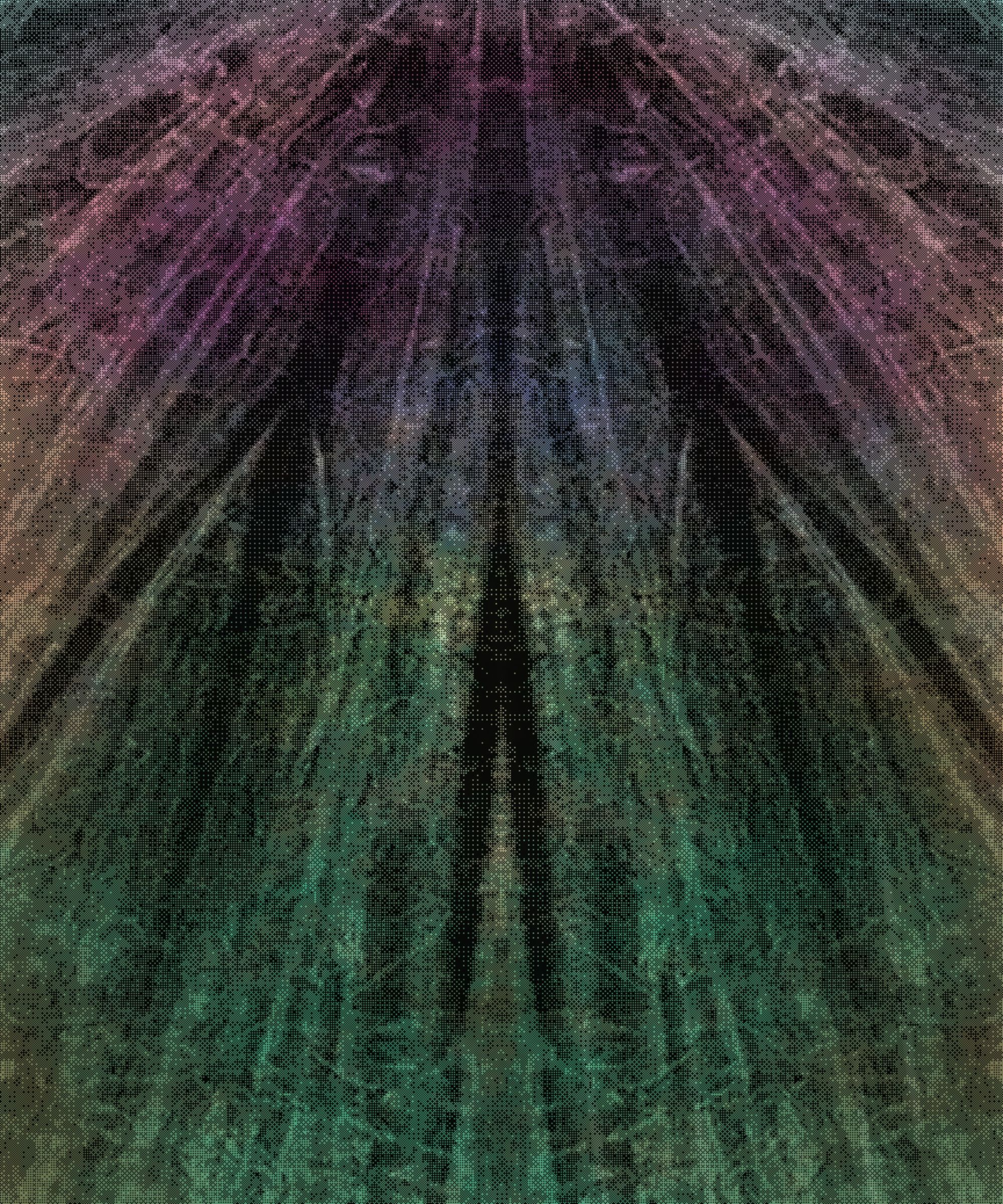 I started with the pattern variable, this movement was first created by dragging large paintings through the ocean until my brushstrokes disappeared and the earth becomes the composer. The movement that emerged is akin to light fracturing through water, the bark of trees, or the skin of reptiles. When redacted into visible pixels it harkens to traditional screen-printing and a web 1.0 dream. When the patterns start multiplying, they become portals to elsewhere, while also signifying a system trying to ‘learn’ the movements of the earth. I see the ‘hibernal’ as blizzards, ‘maelstrom’ as dreams of the deep water and the ‘arboretum’ as lush gardens. The palette variable is meant to mirror lavish watercolor washes while the smokey ribboning represents the winds. In totality, I hope is to blur many lines – constructed and broken down, calming and fearsome, aspirational and apocalyptic.