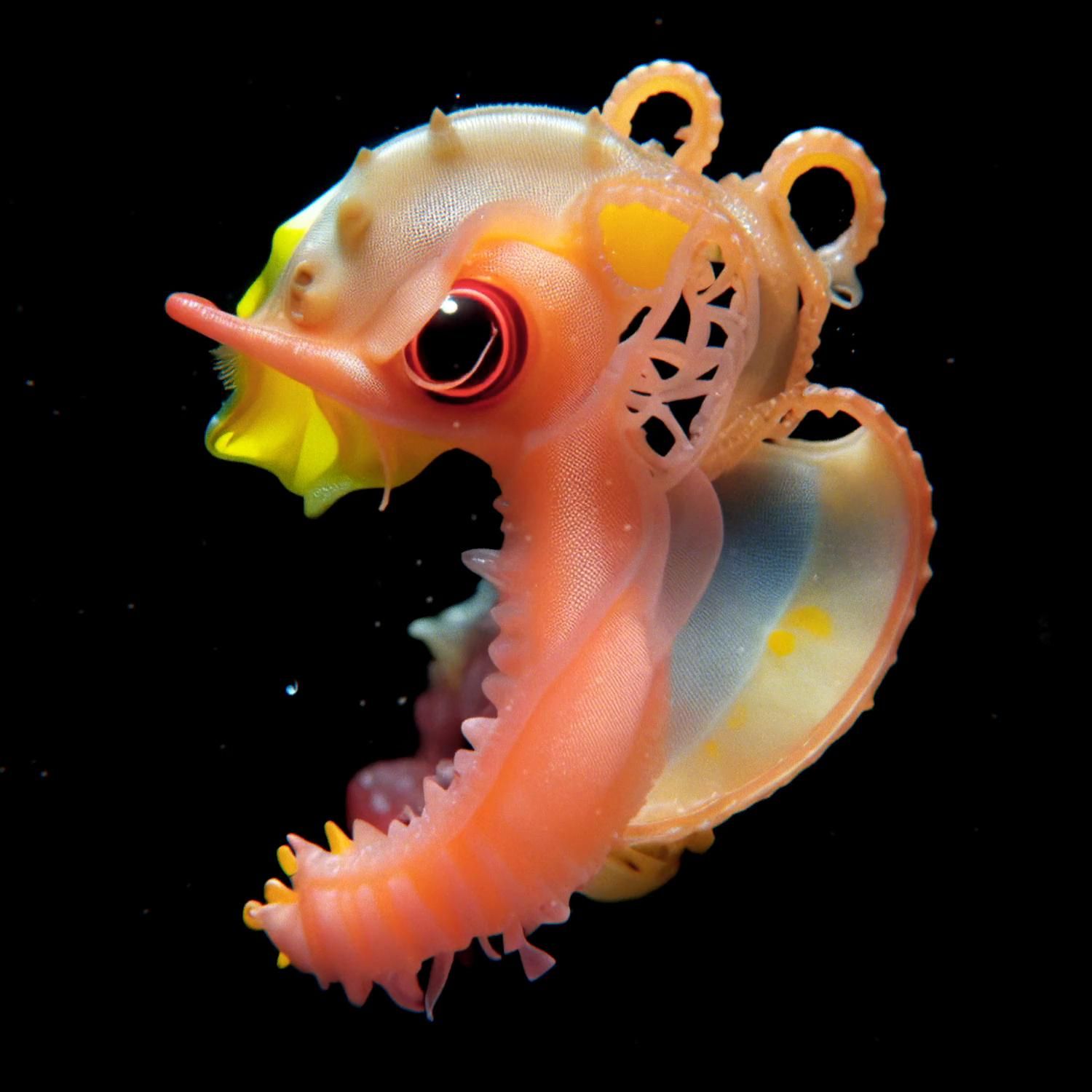 Historically, the Renaissance cabinets of curiosities collected wonders that blurred the lines between natural history and imaginative interpretation, much like "The Abyssal Unseen" blurs the lines between biological reality and digital fabrication. his collection invites viewers to reflect on the authenticity and ontology of beings born from digital code, urging a reconsideration of what constitutes 'life' in the digital age.