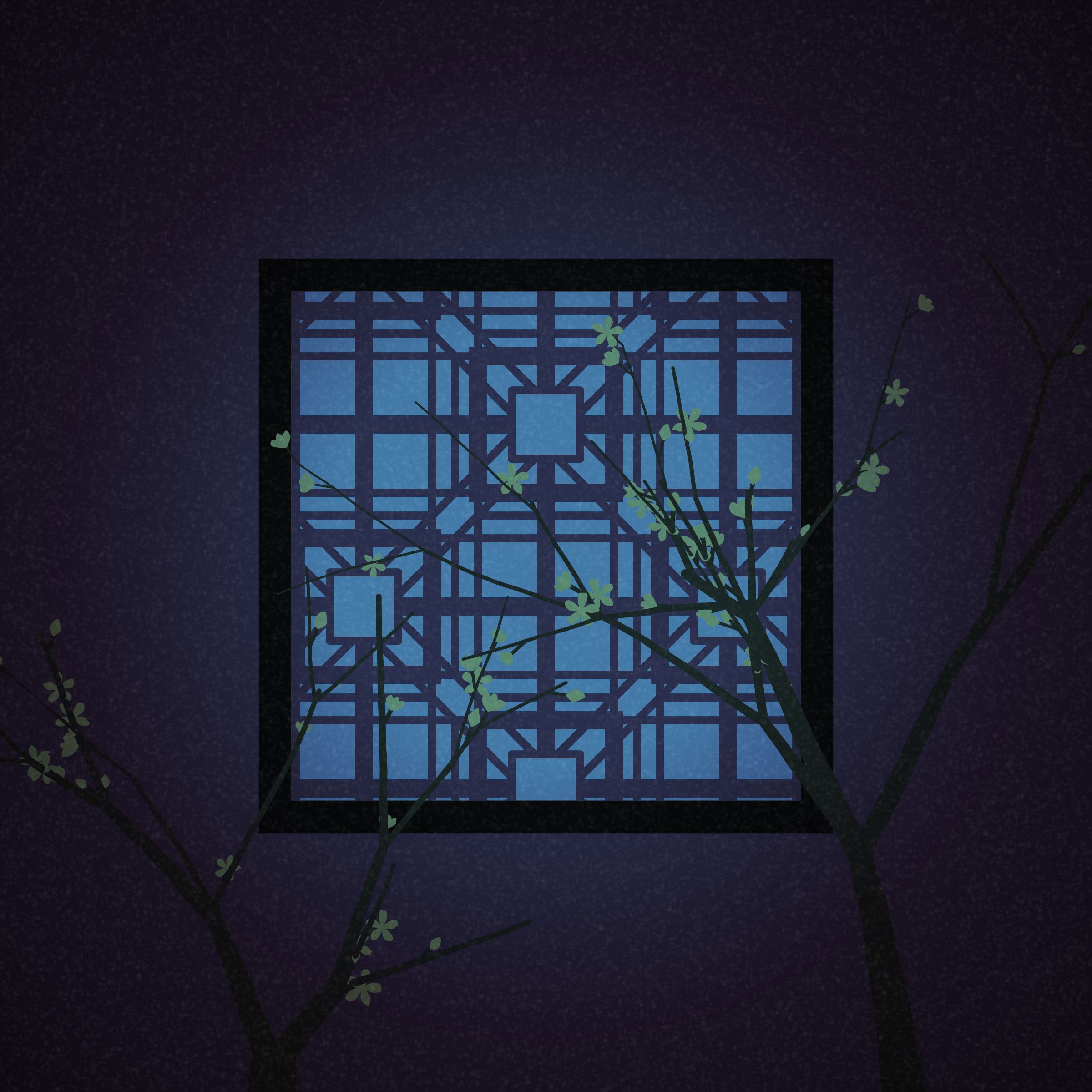Project Description: Inspired by traditional Chinese architecture and Chinese painting, this project uses algorithms to generate window lattices with different patterns and blossoms and trees with different postures. Together with the possible rain and snow scenes, they constitute a corner with oriental aesthetic charm. These scenes are dynamic, such as slowly moving window frames, tree-growing, raining. We can imagine being indoors, watching the shaky tree shadow outside the window, or looking into the window from the same perspective as the current picture. Maybe we are looking into memories, maybe we are looking into hopes, anyone can write their own poems.