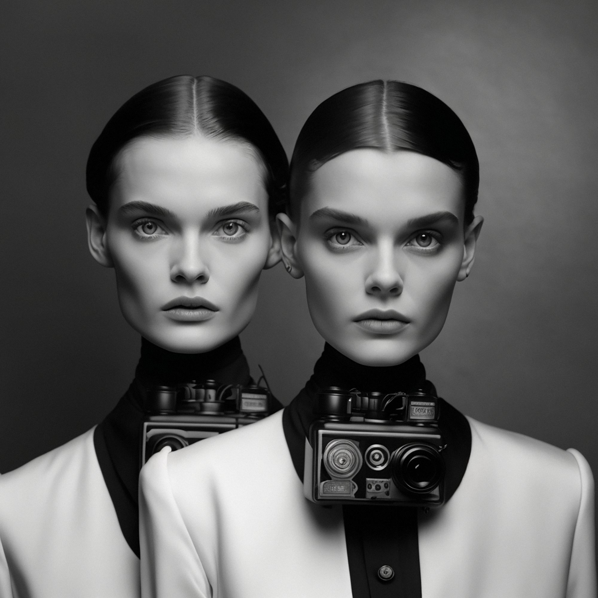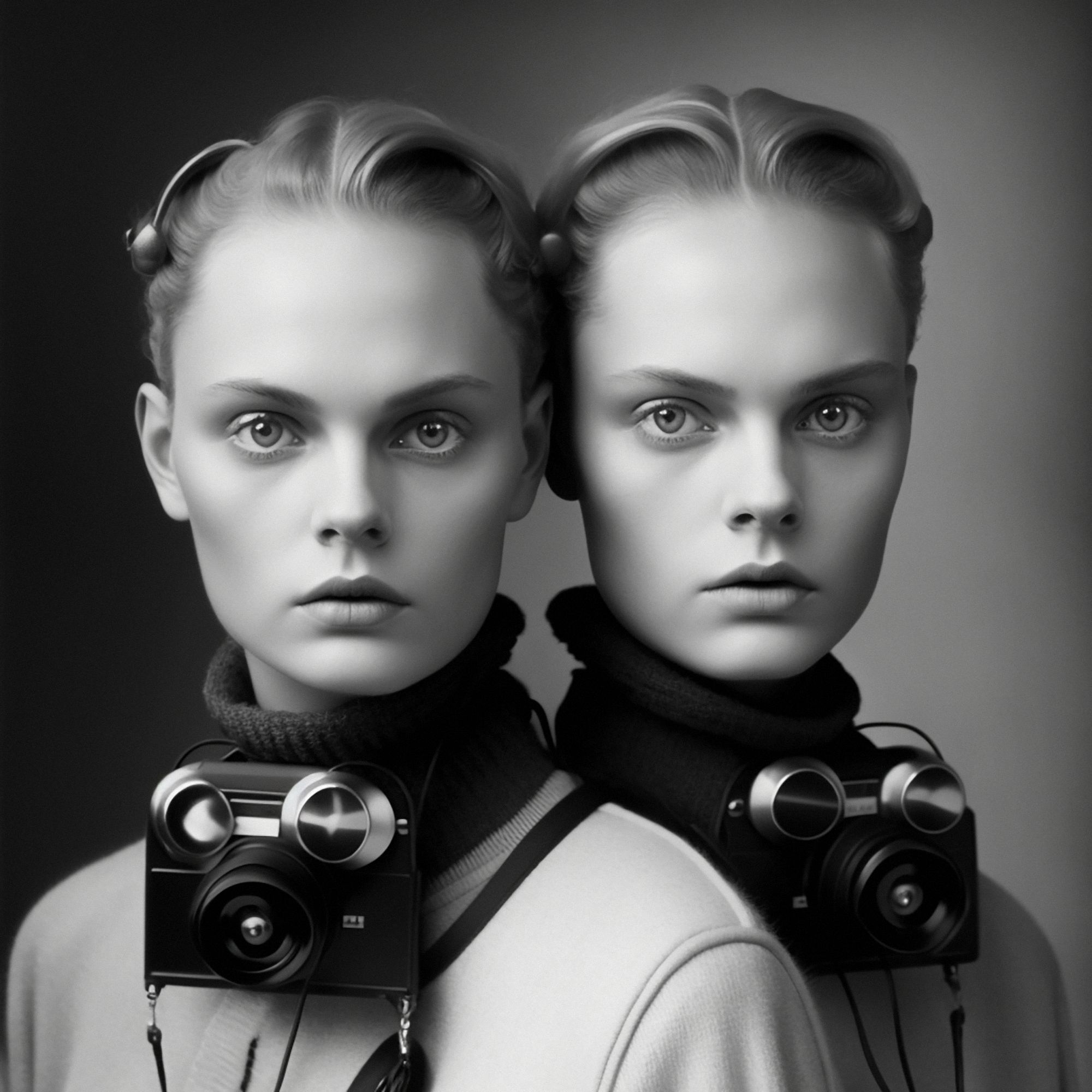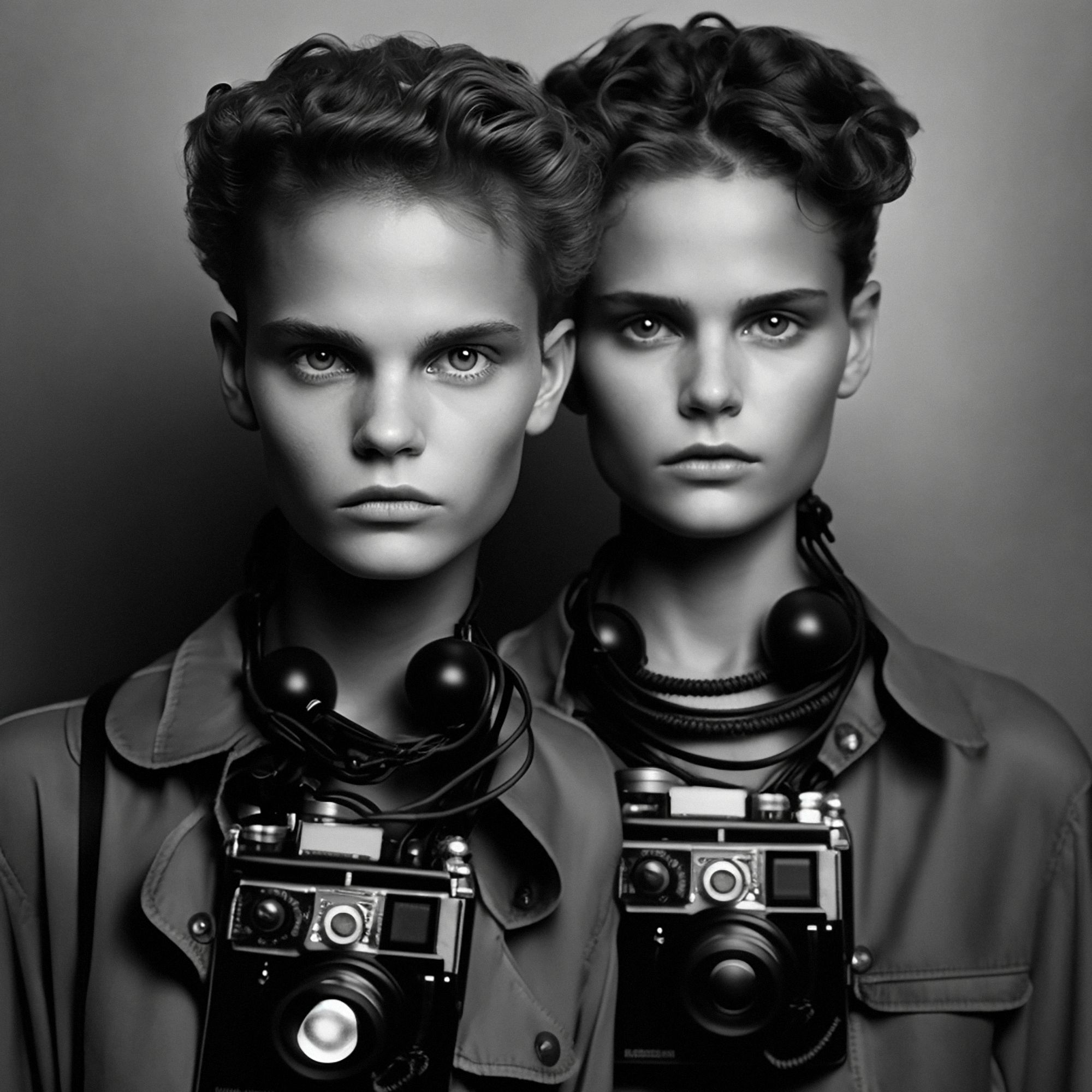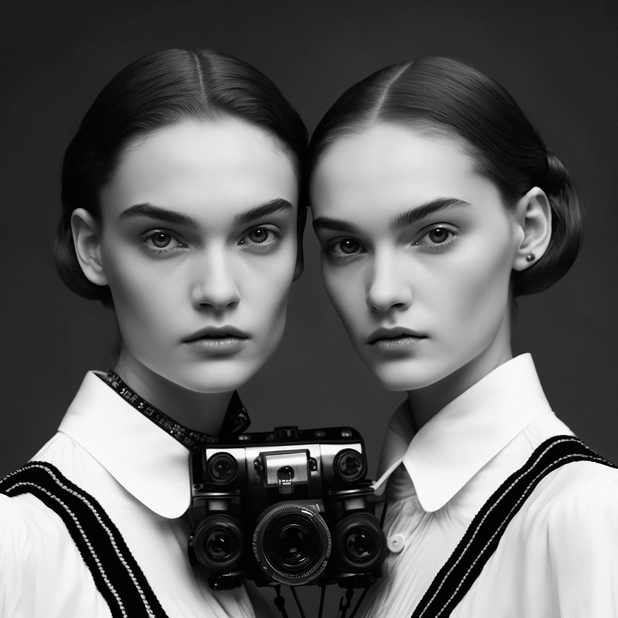 Traces of Truth comprises 500 portraits of twins, each adorned with cameras born of dystopian utility, as a universal metaphor for the tension between resemblance and recognition- asking questions about the camera’s influence on our culture, self-awareness, our subservience to its power, the nature of photography and our relationship to truth. All work copyright Barry Sutton 2023. Owner of this work may display for private or public use. No other rights are granted.