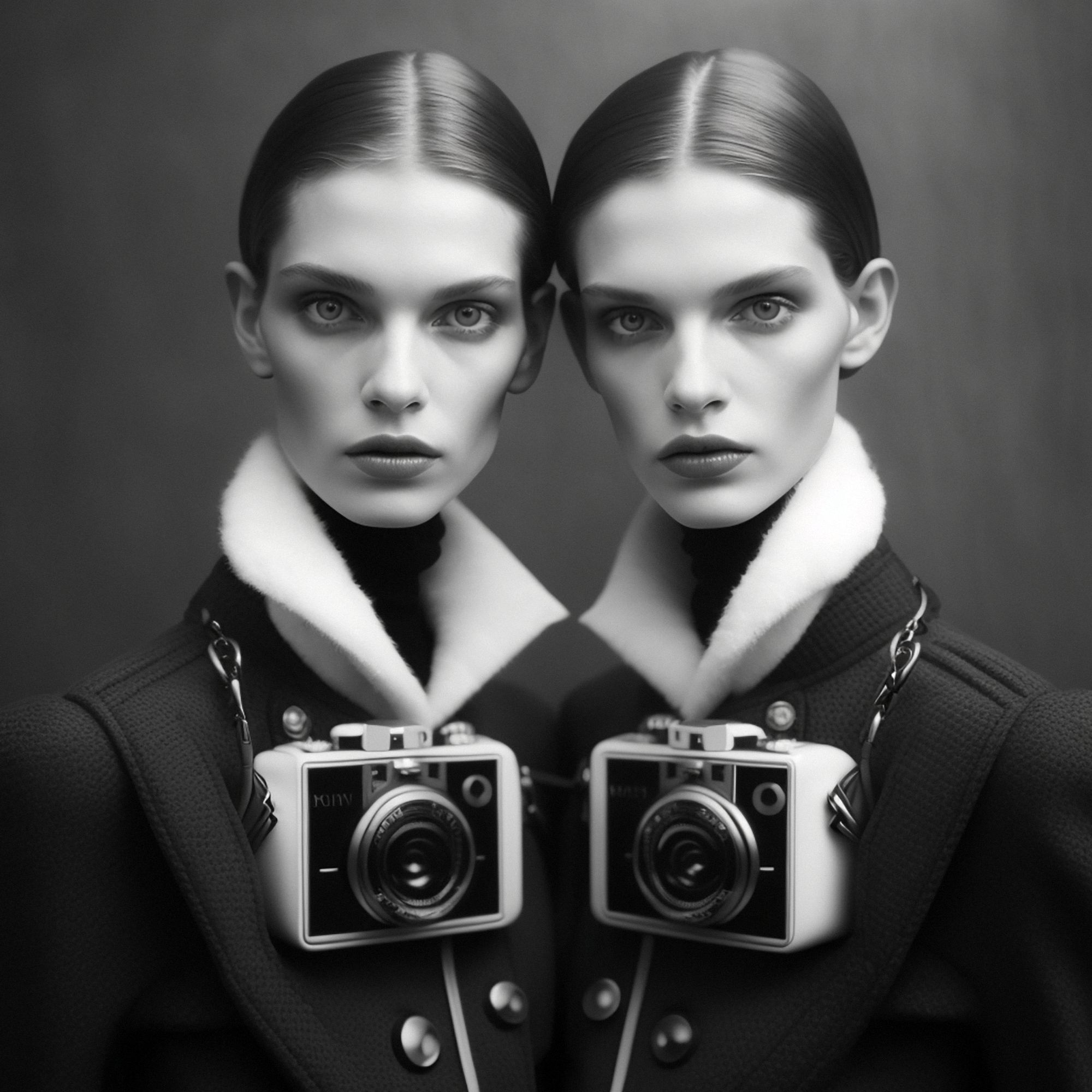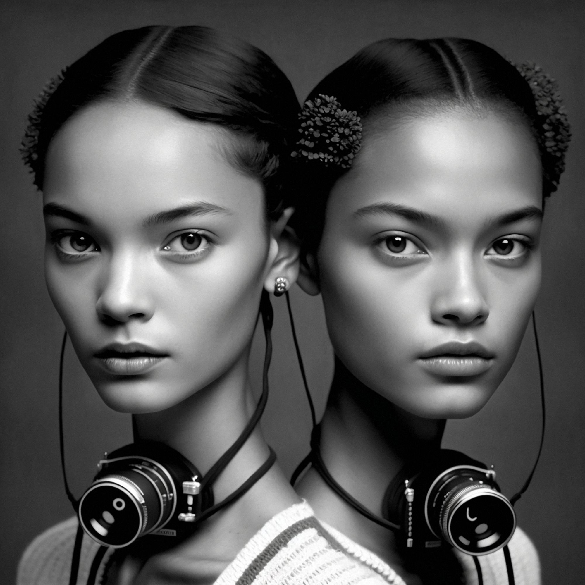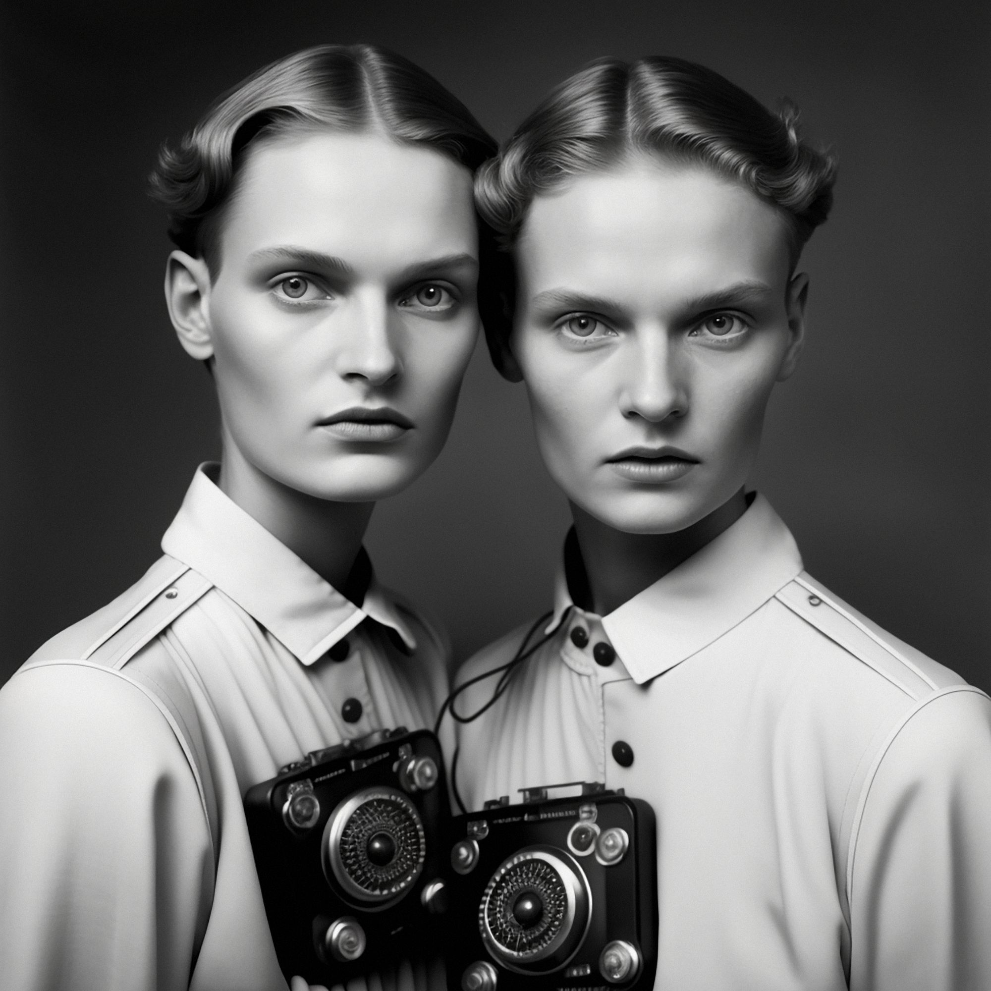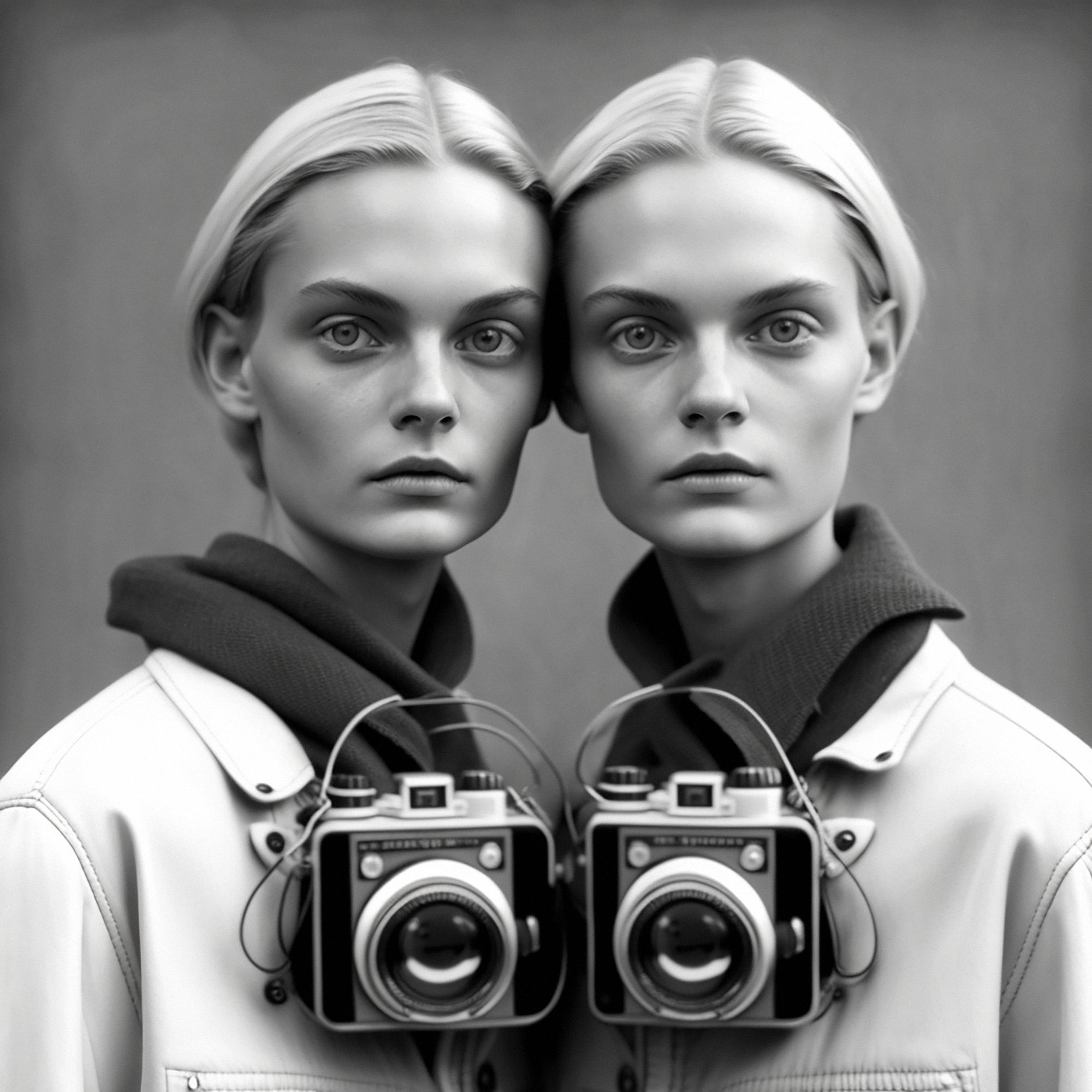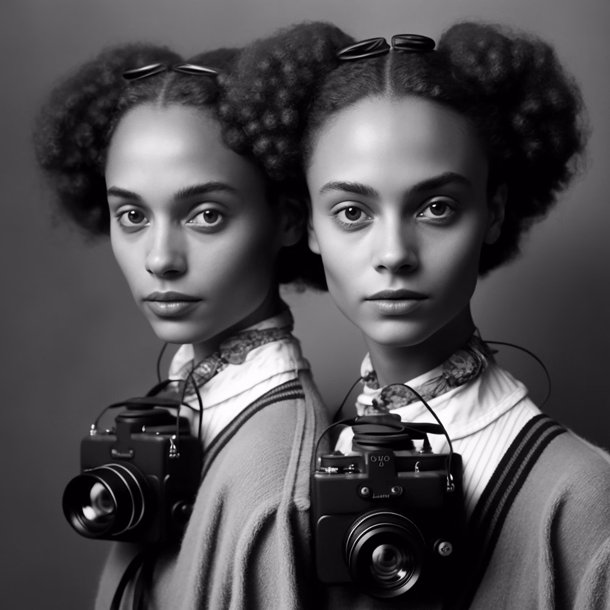 Traces of Truth comprises 500 portraits of twins, each adorned with cameras born of dystopian utility, as a universal metaphor for the tension between resemblance and recognition- asking questions about the camera’s influence on our culture, self-awareness, our subservience to its power, the nature of photography and our relationship to truth. All work copyright Barry Sutton 2023. Owner of this work may display for private or public use. No other rights are granted.