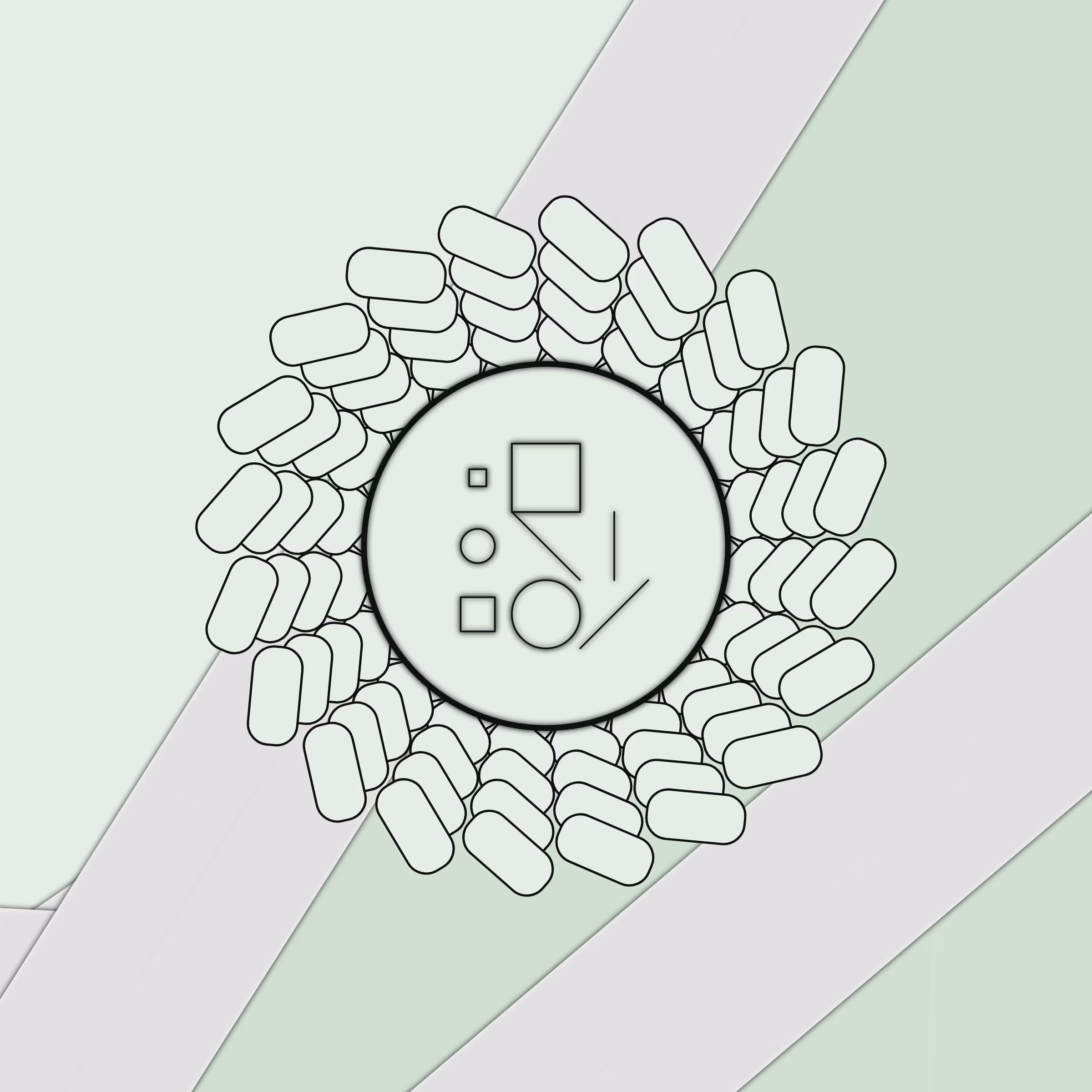 Project Description: An arcane schematic encased within a rotating vortex. Token data determines palette, vortex attributes, and the arrangement of all lines and shapes.