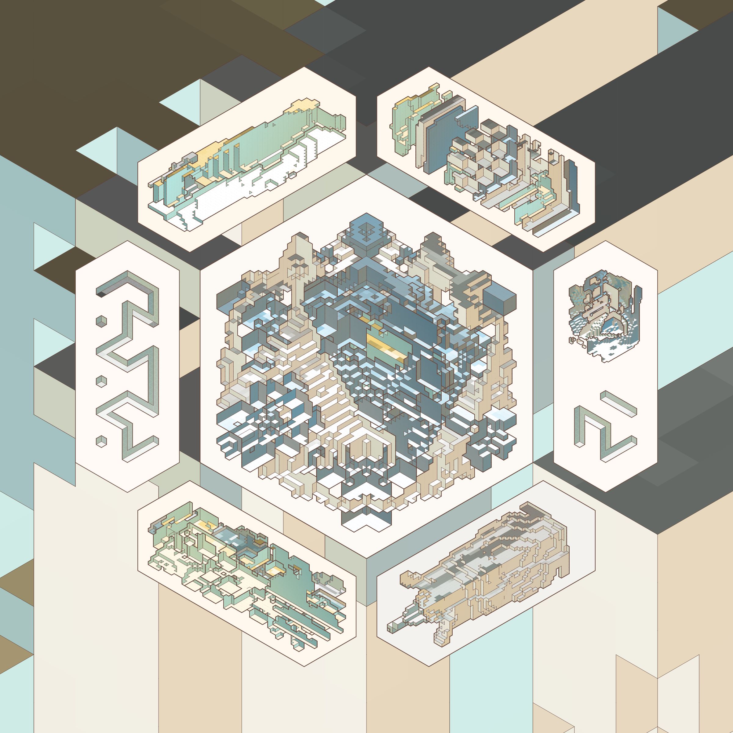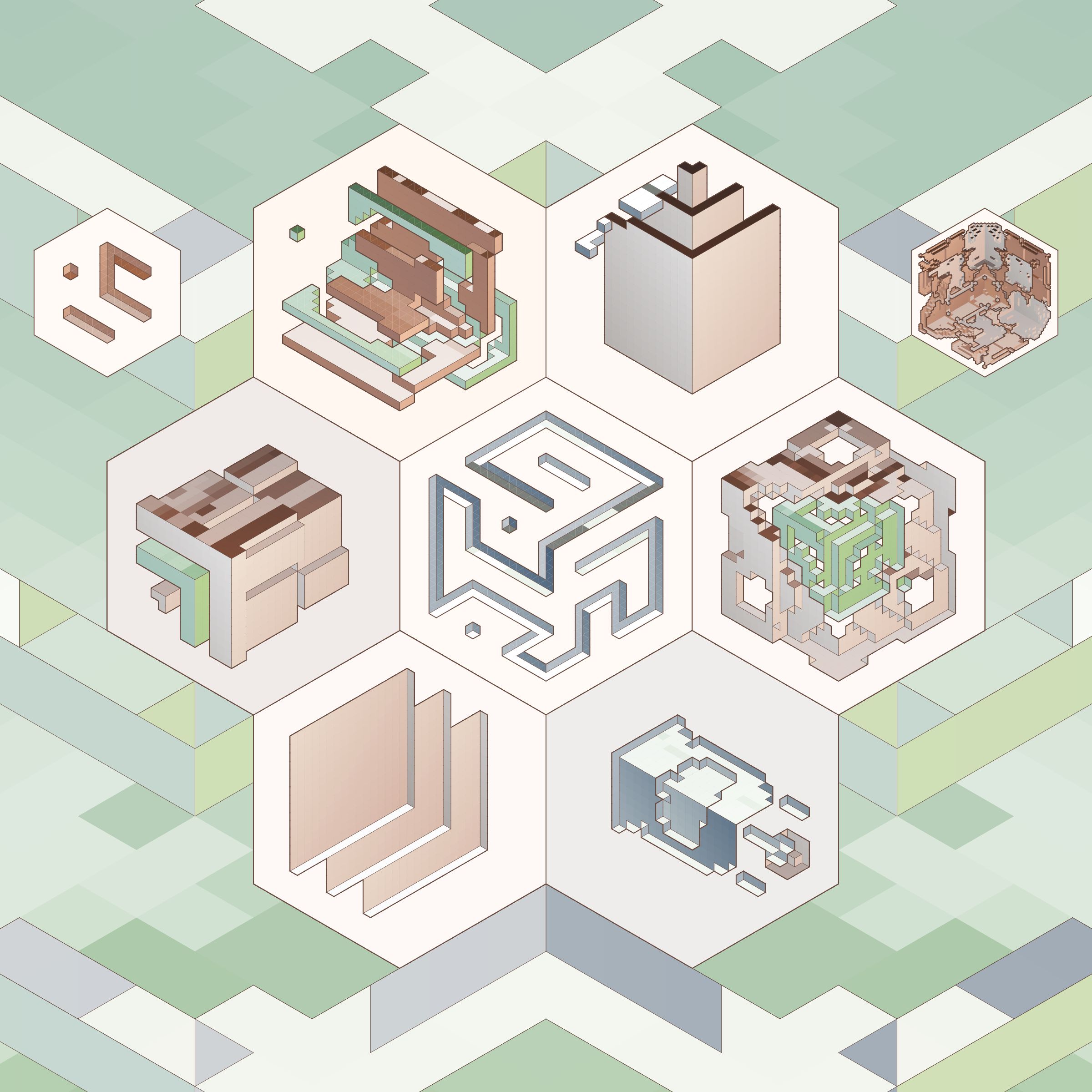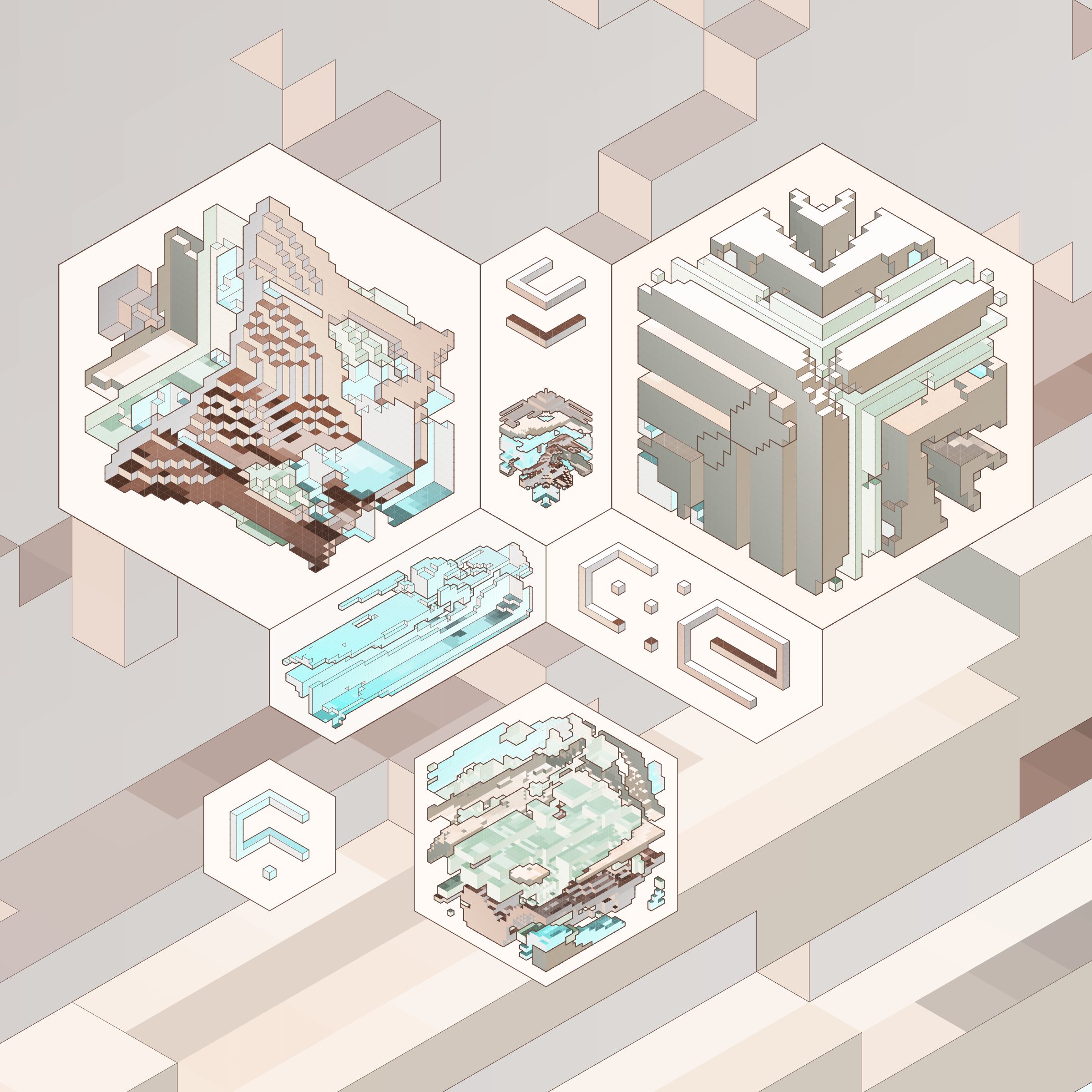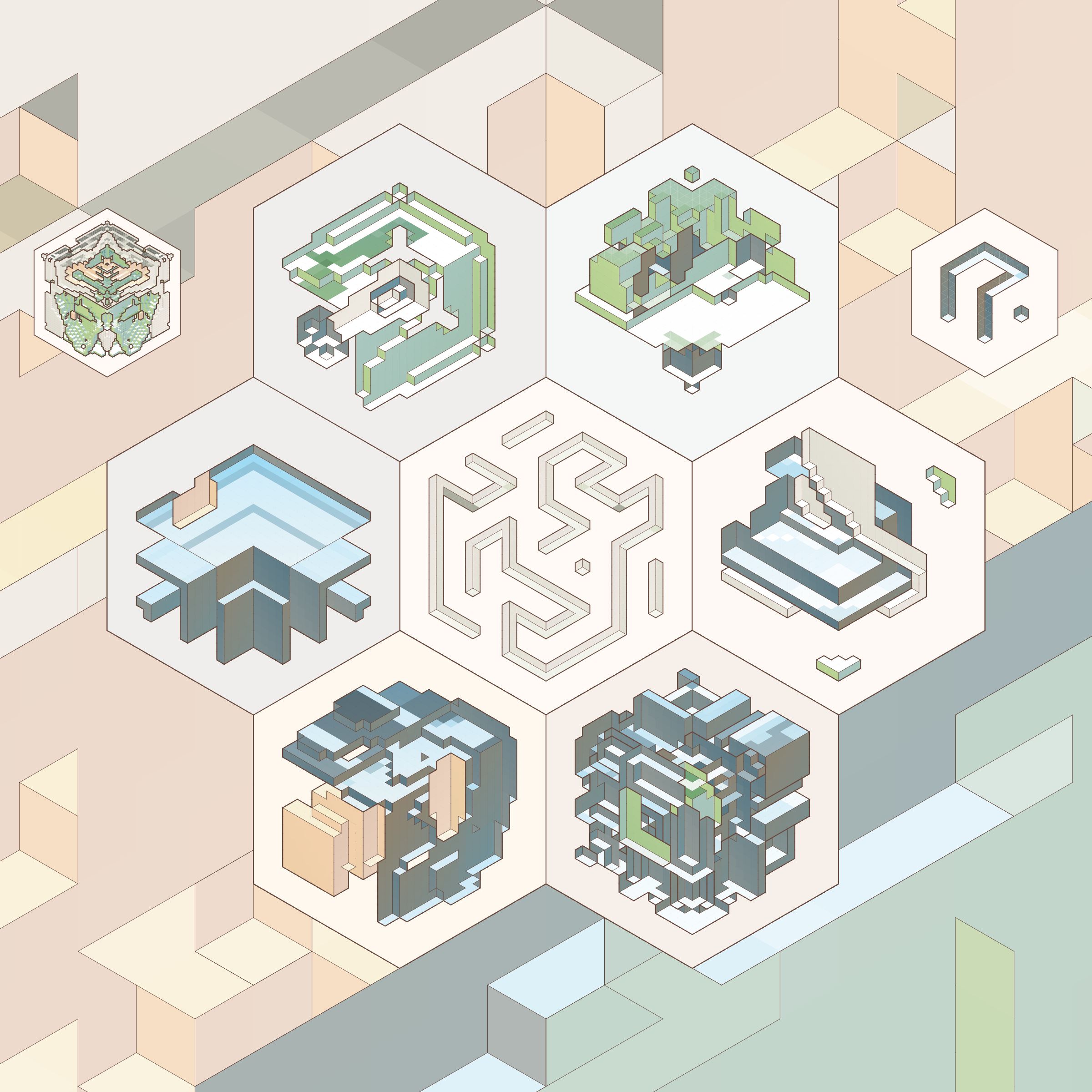 The isometric view and color palettes are inspired by old encyclopedia illustrations and schoolbook diagrams.