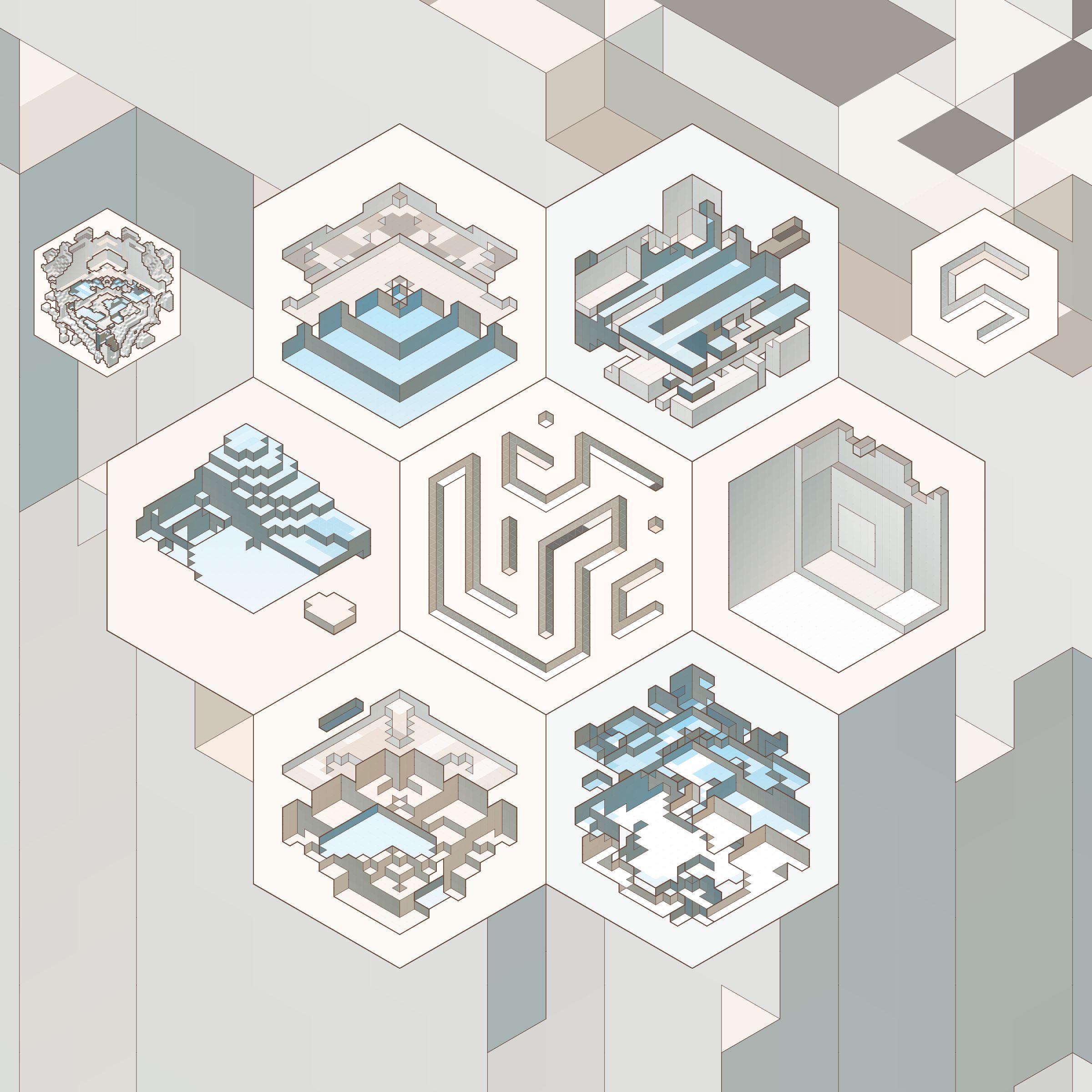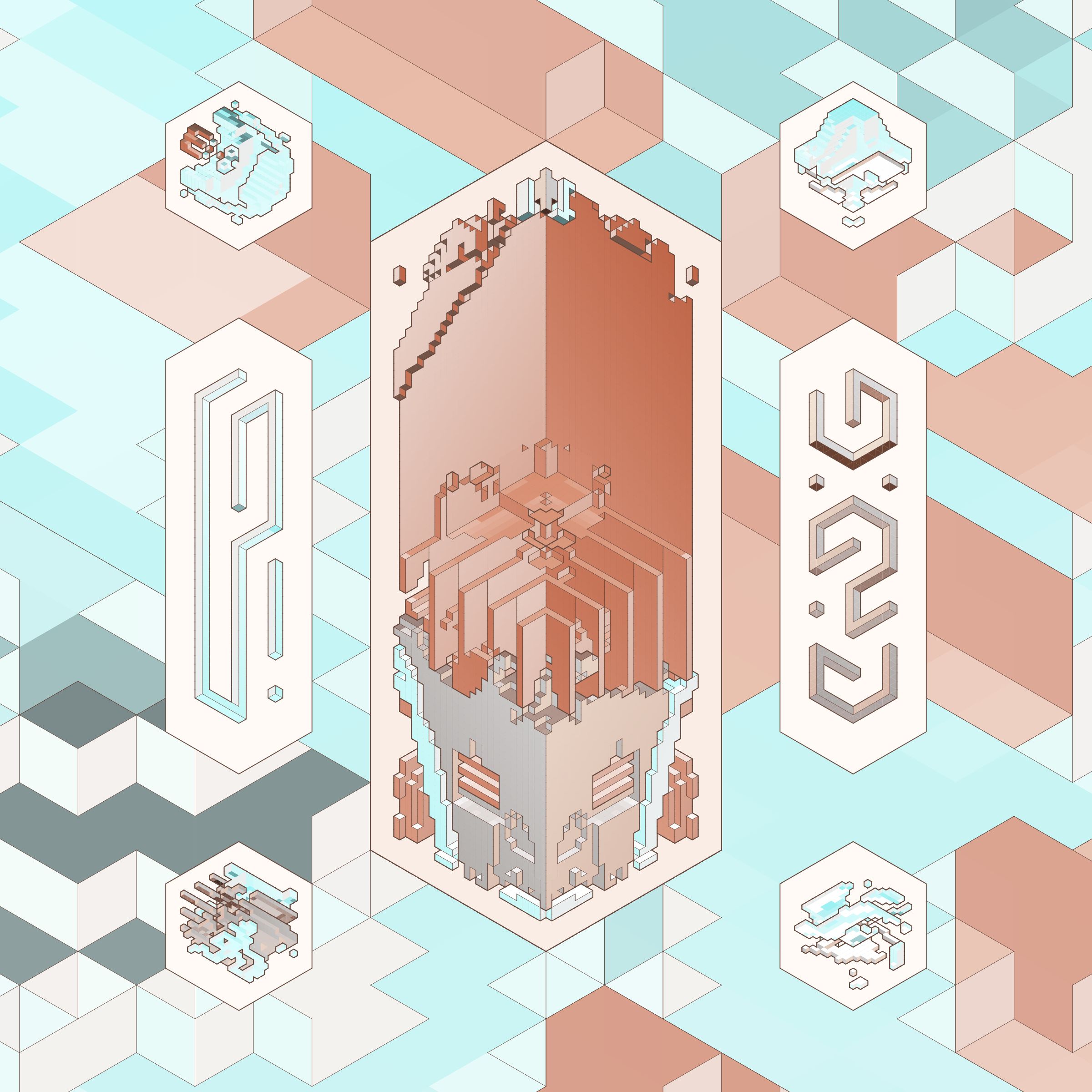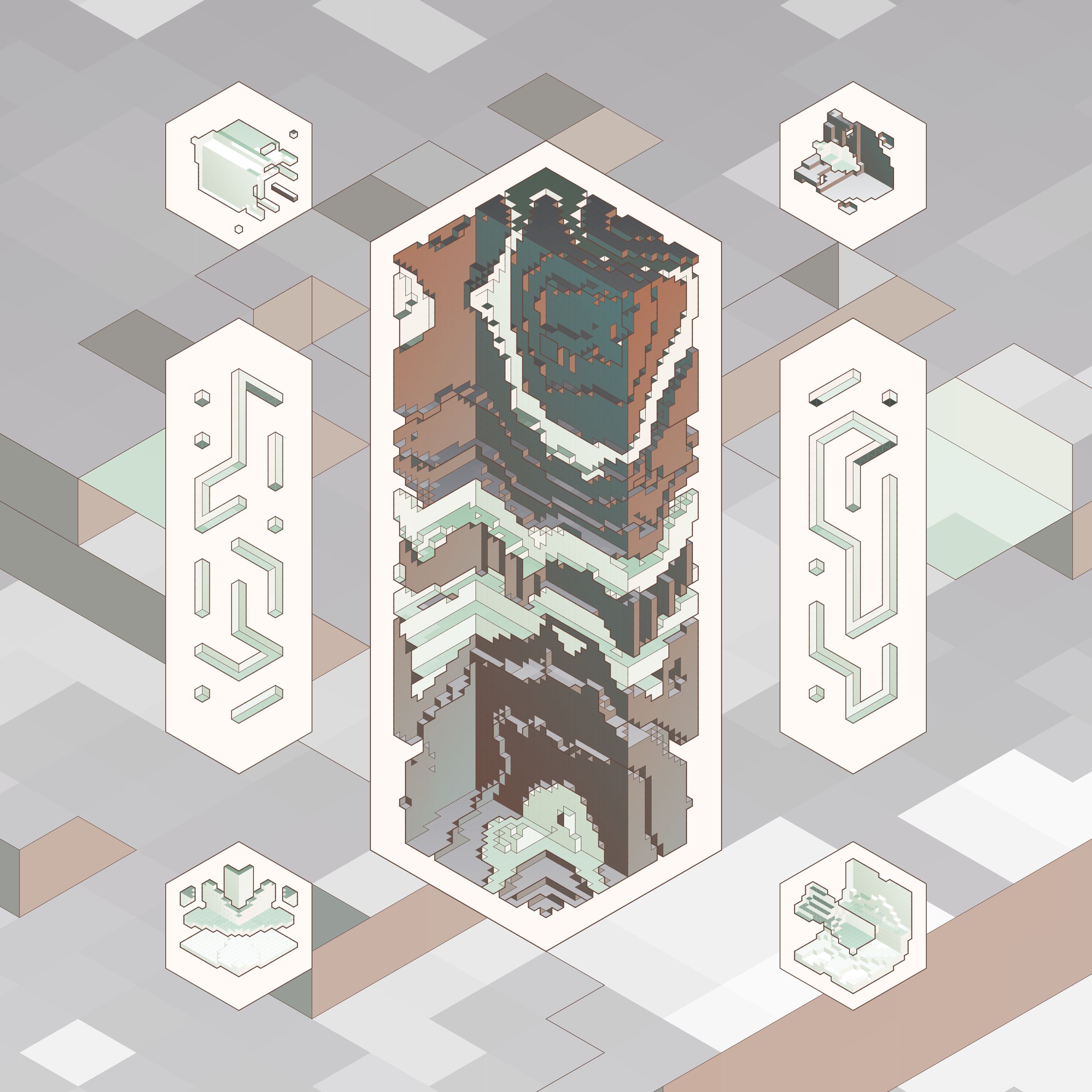 The isometric view and color palettes are inspired by old encyclopedia illustrations and schoolbook diagrams.