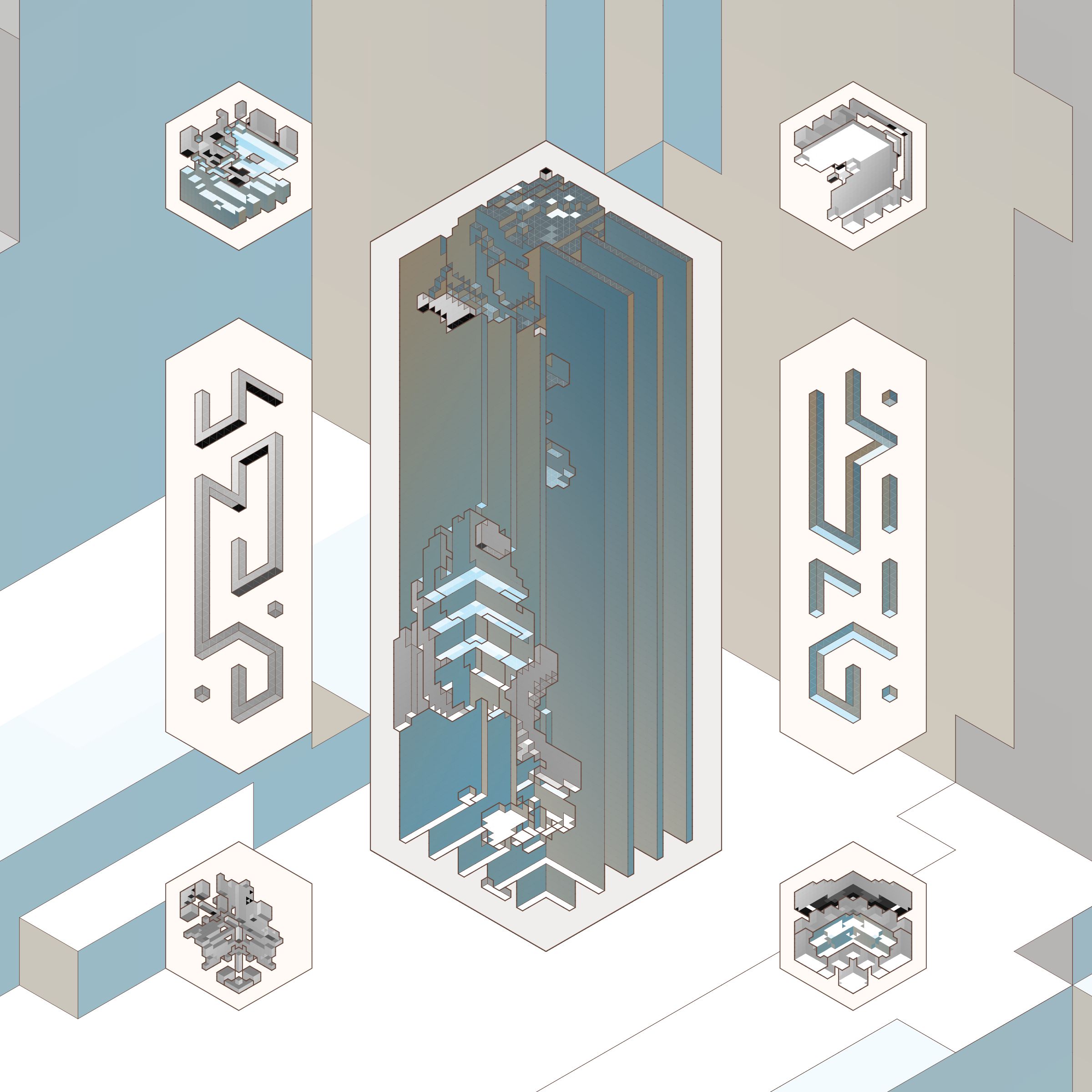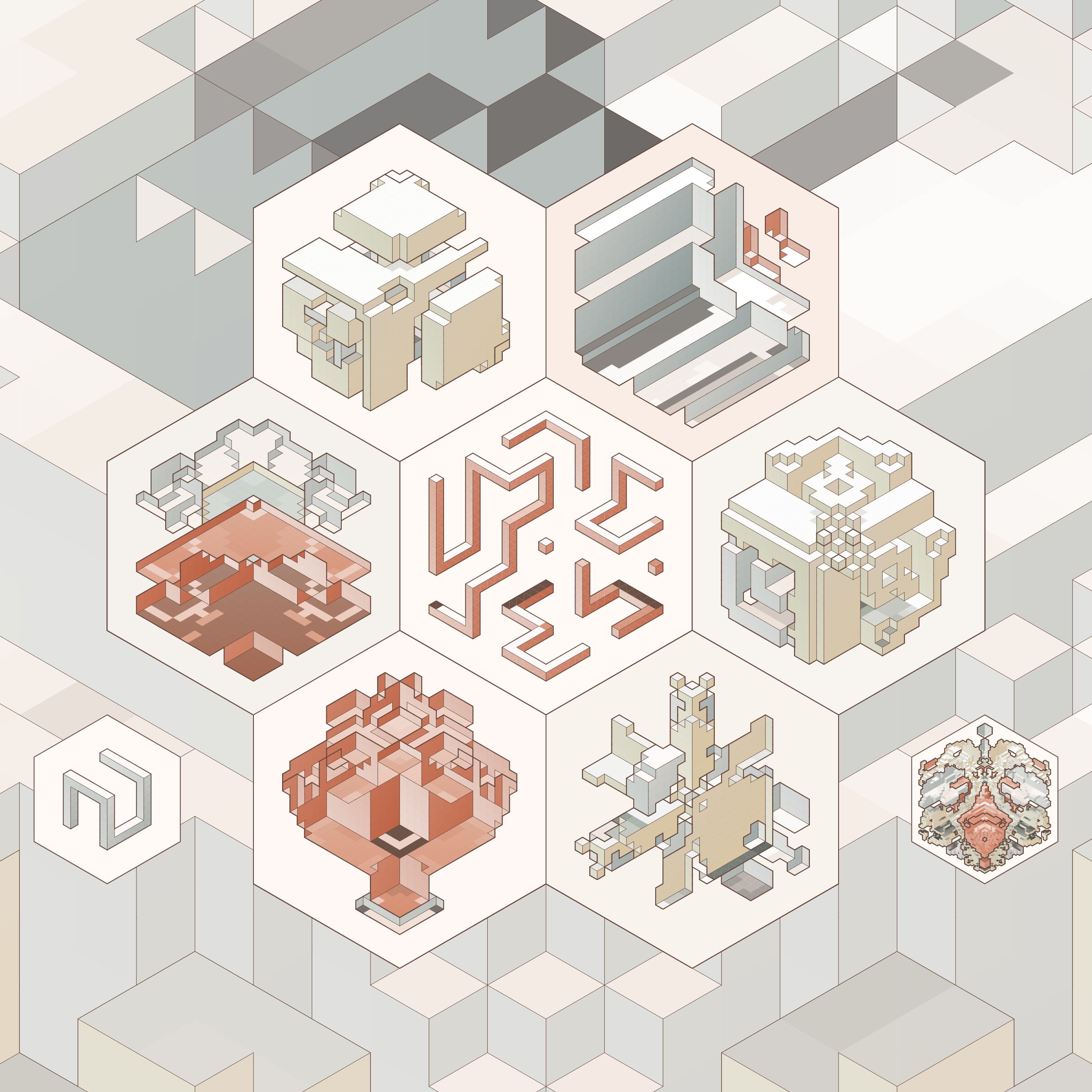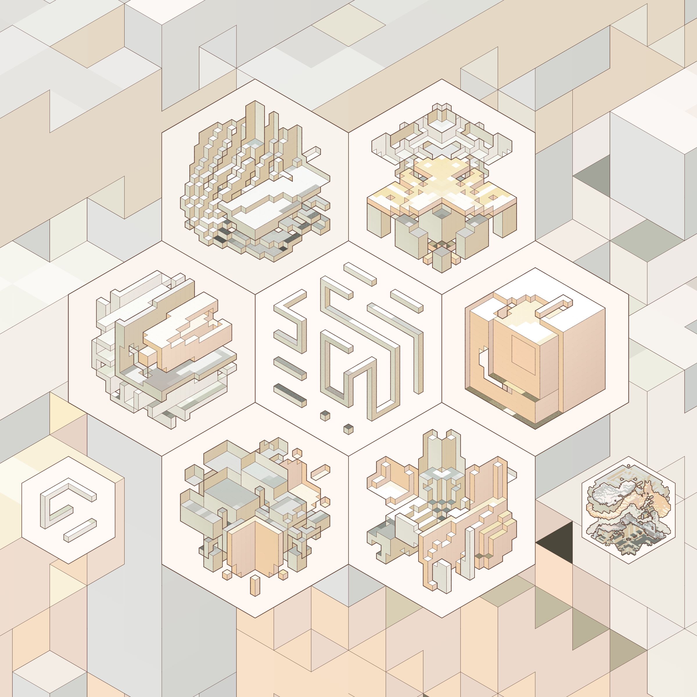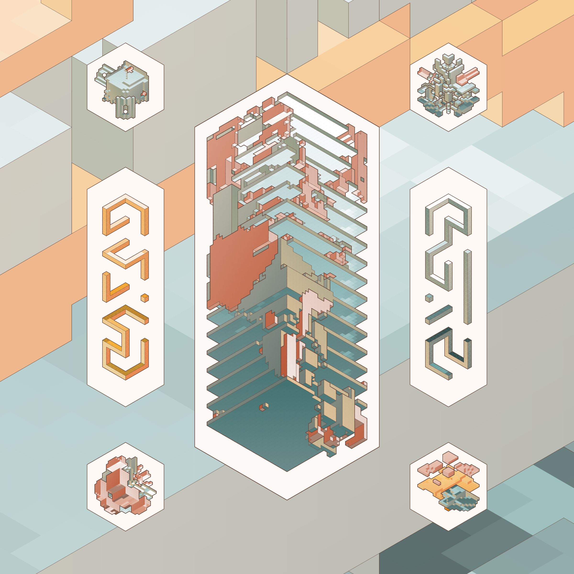 The isometric view and color palettes are inspired by old encyclopedia illustrations and schoolbook diagrams.