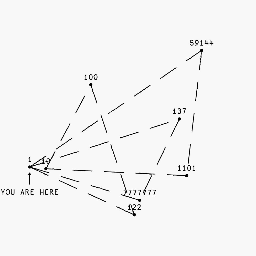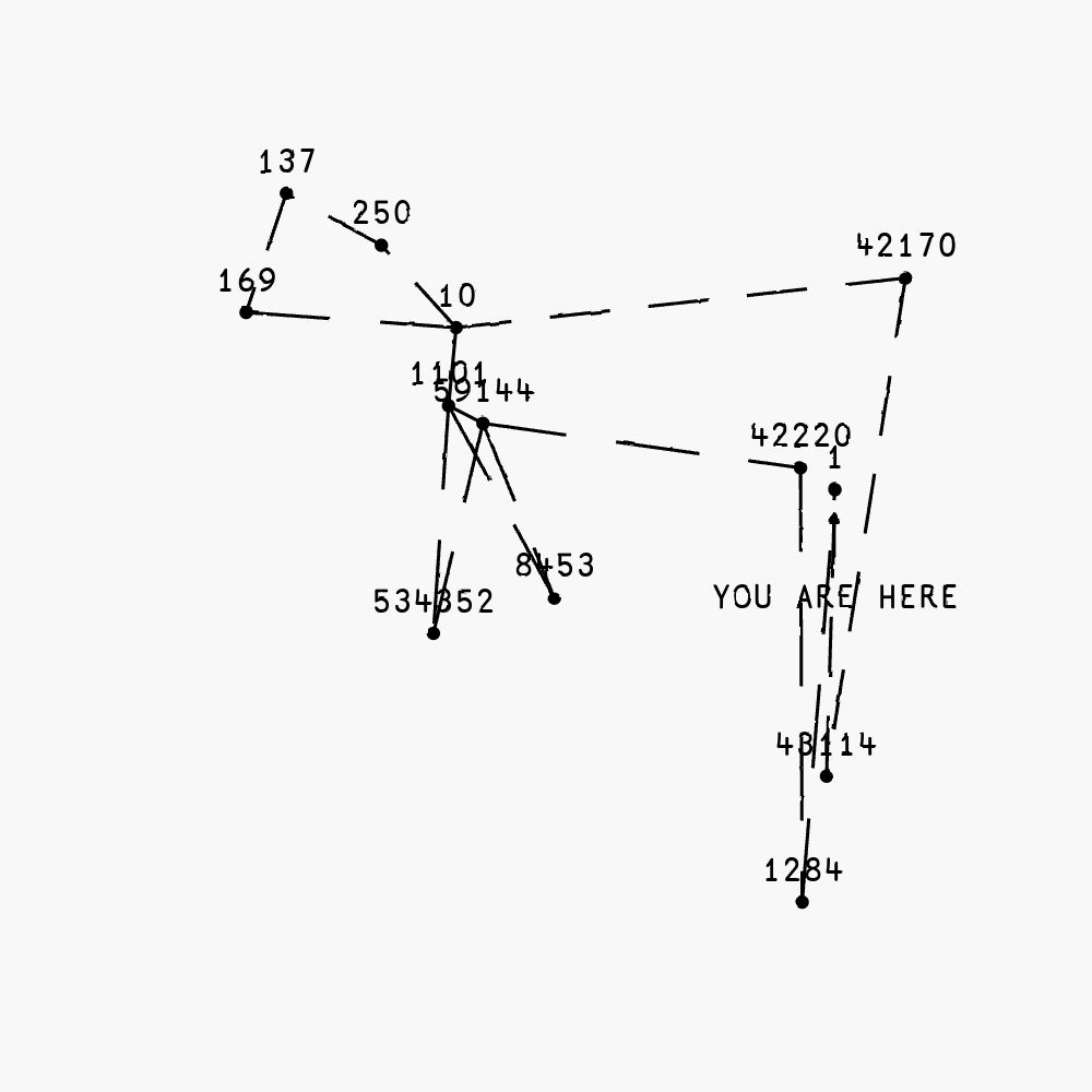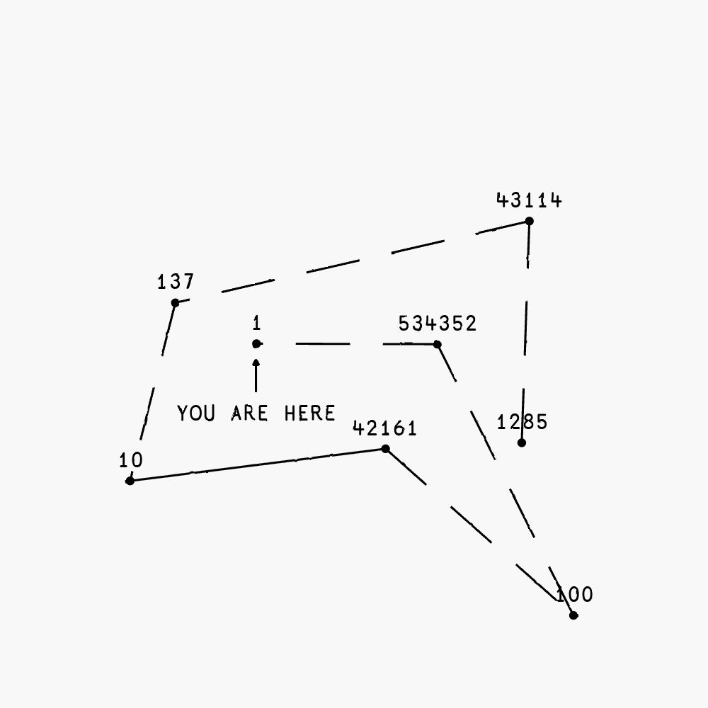"You Are Here" is an onchain conceptual-generative artwork that plays with the act of bridging between blockchains. The individual tokens of the collection are bridgeable between various EVM-based blockchains. Every bridge transfer creates a visual trace between the chain ids. The traces between two chains intensifies every time the token is bridged between them. The token traces the history of the last 100 bridging transfers.